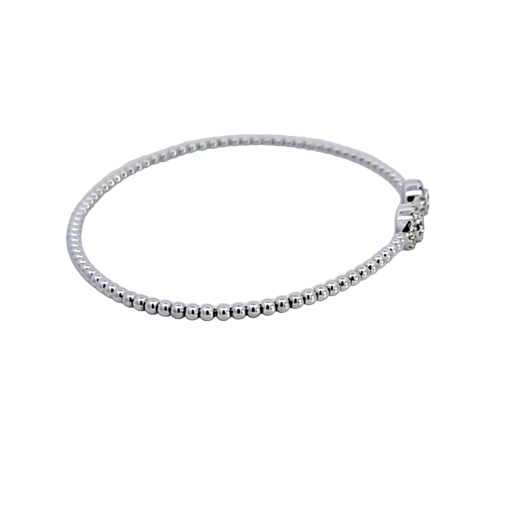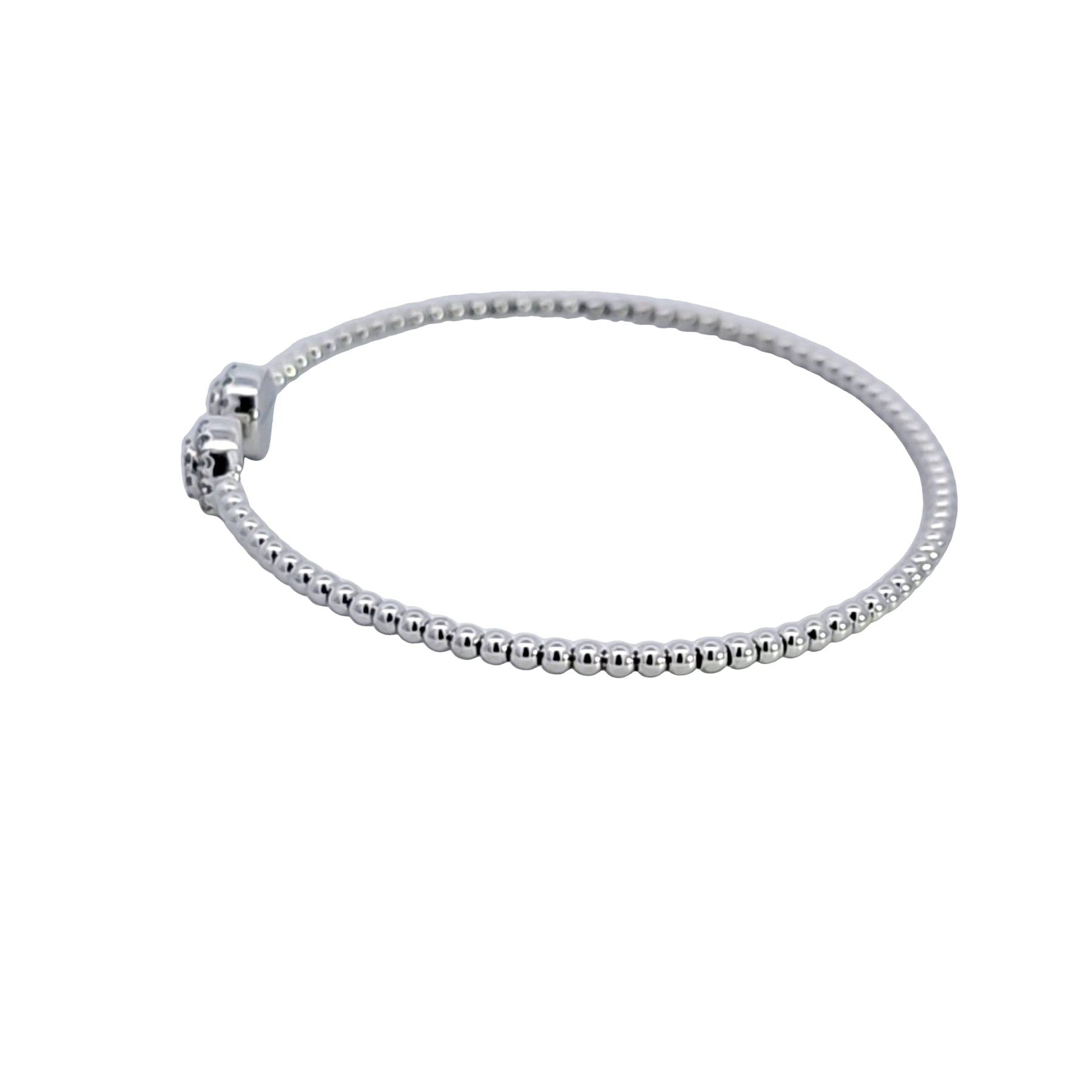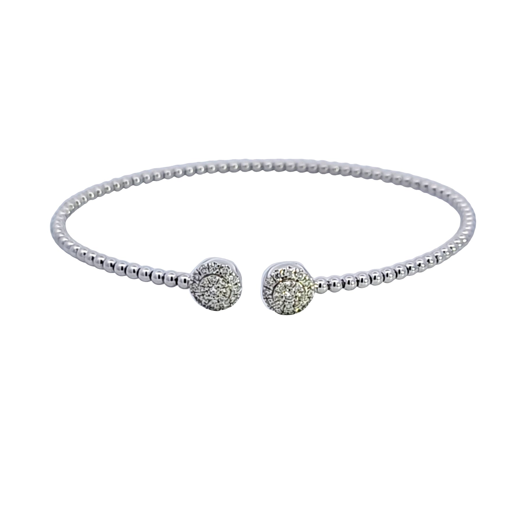 Discover the epitome of sophistication with this stunning diamond bracelet, featuring a delicate band adorned with Bujukan beads that culminate in two magnificent diamond encrusted spheres. Perfect for adding a touch of glamour to any ensemble. Total weight of the diamonds is .29 carat.