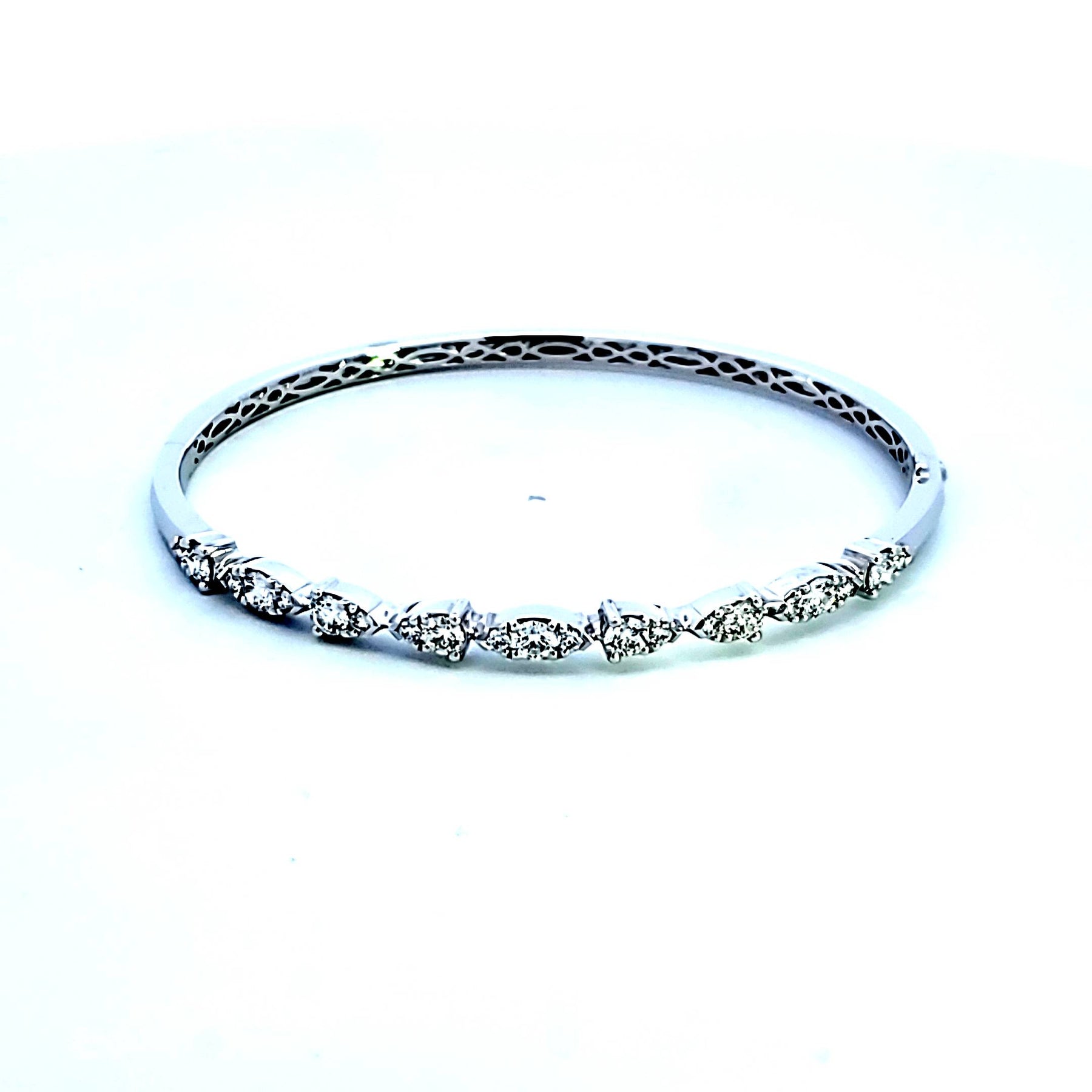 Transform any ordinary outfit into a glamorous statement with our luxurious Hearts on Fire "Aerial Dewdrop Bangle Bracelet. This exquisite accessory is designed for the fashion forward individual who appreciates a touch of sparkle in their ensemble. The Hearts on Fire diamonds are VS2 to SI1 clarity and G to H color, with a total weight of 1.20 carats.