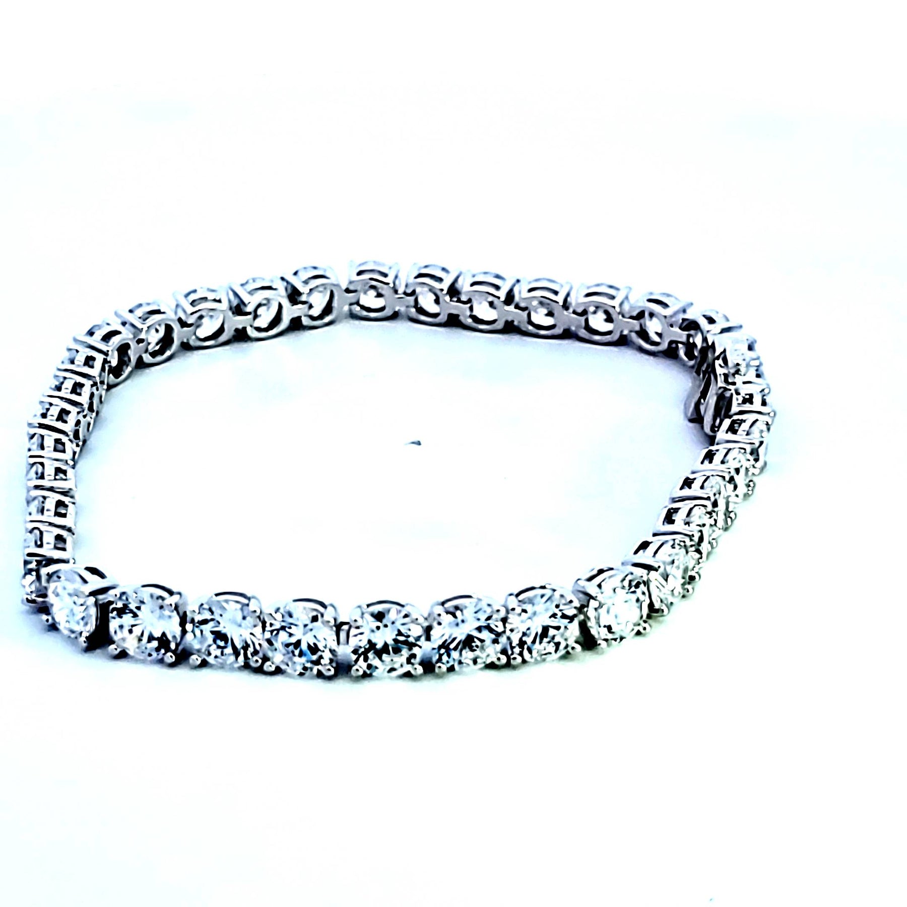 Experience unparalleled luxury with this 16 carat total weight cubic zirconia tennis bracelet, showcasing an array of dazzling stones set in platinum plated sterling silver. Its classic design ensures that it remains a staple piece in your jewelry collection for years to come.