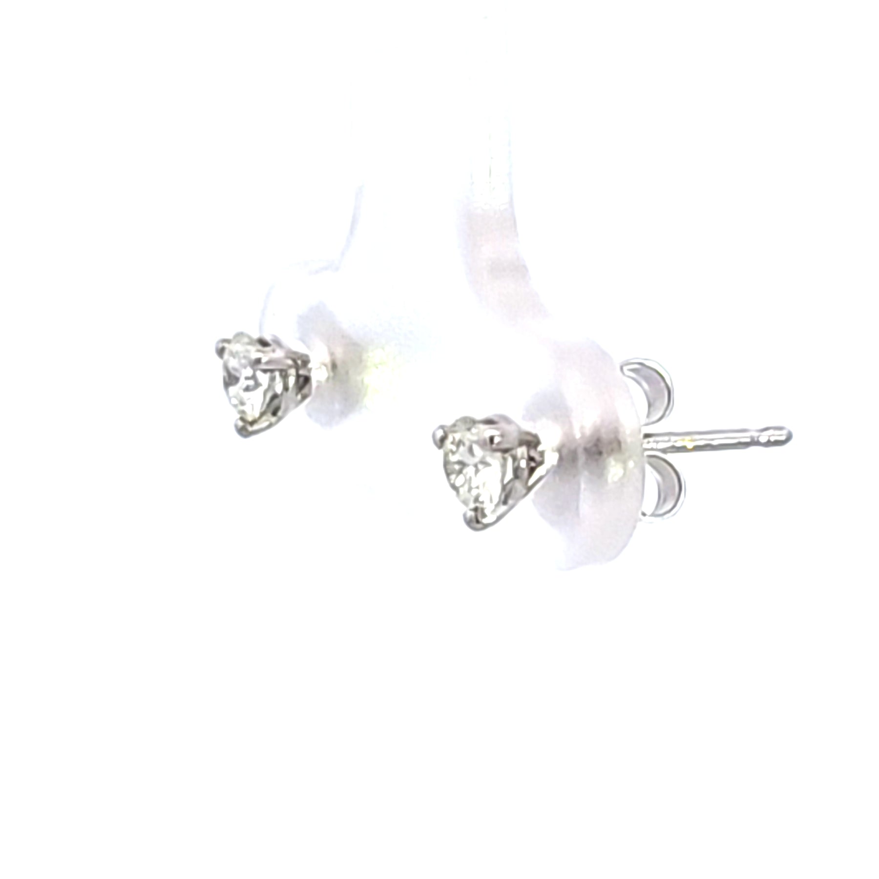 Crafted with precision, these radiant diamond stud earrings are a timeless addition to any jewelry collection. Set in classic gold prongs that enhance their sparkle, they are the epitome of elegance and simplicity. These 14K white gold earrings have a total weight of 1/4 carat diamonds of I1 clarity and I to J in color, in three prong Martini settings.