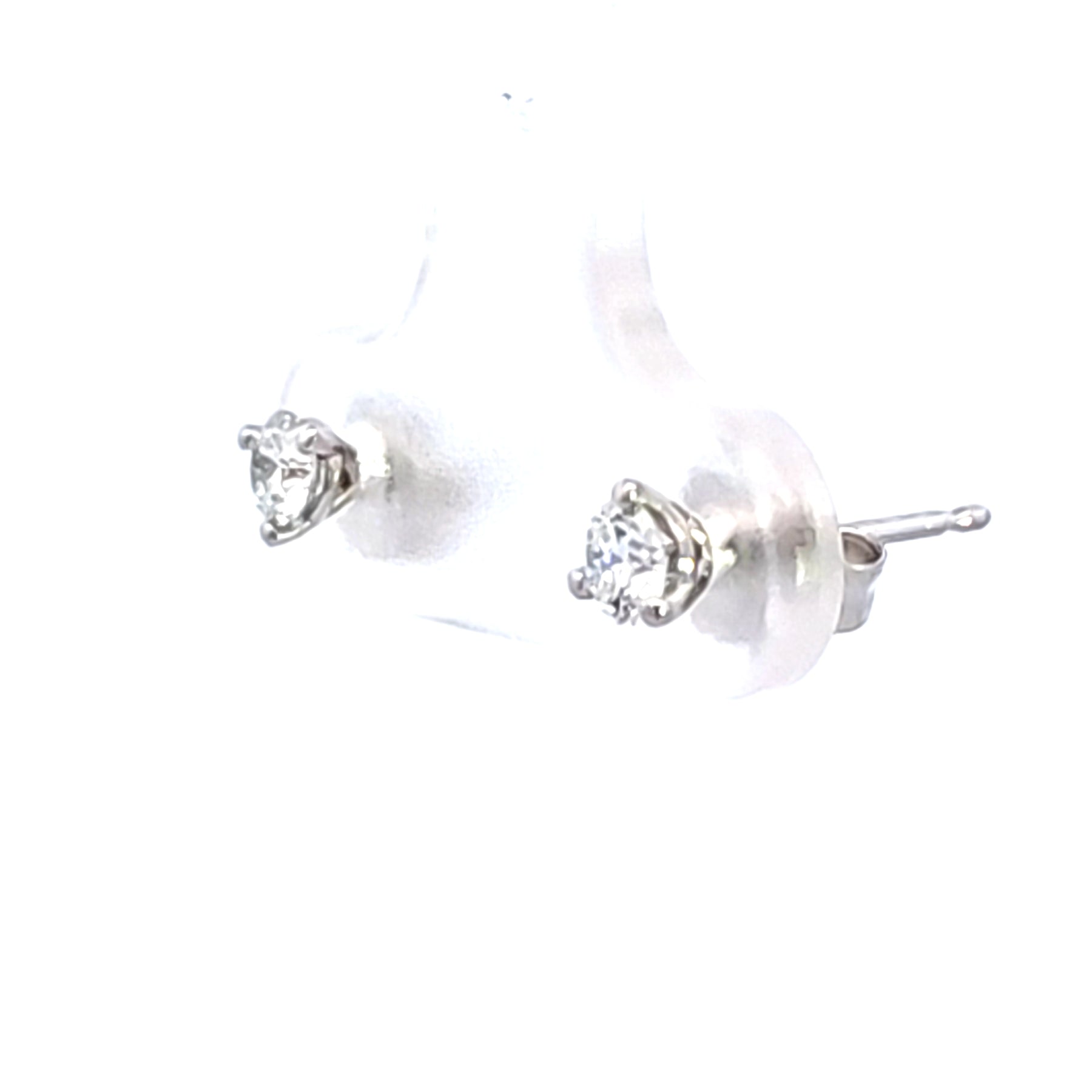 Crafted with precision, these radiant diamond stud earrings are a timeless addition to any jewelry collection. Set in classic gold prongs that enhance their sparkle, they are the epitome of elegance and simplicity. These 14K white gold earrings have a total weight of 1/4 carat diamonds of I1 clarity and G to H in color, in three prong Martini settings.