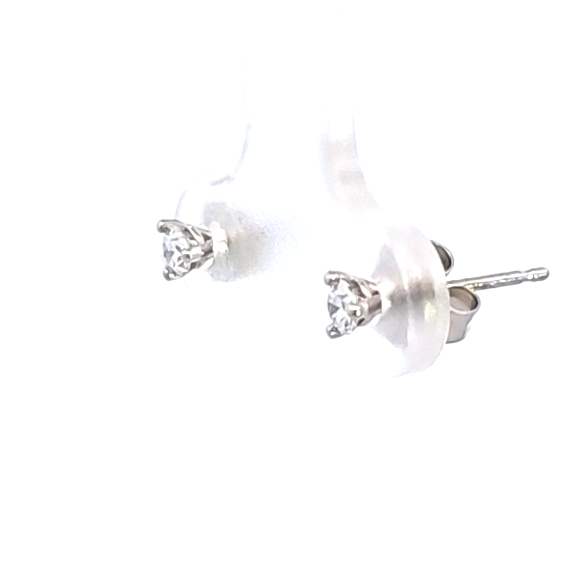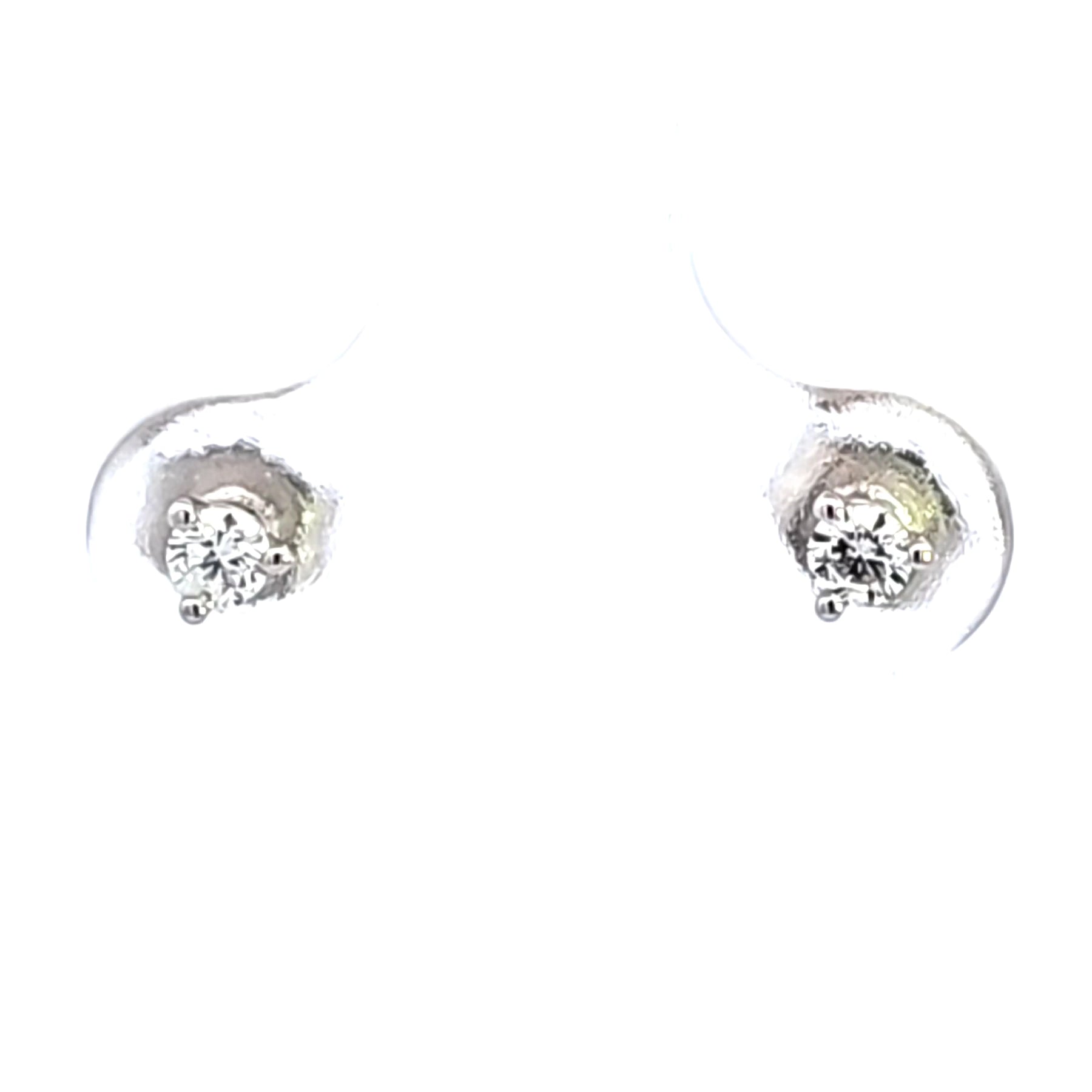 Crafted with precision, these radiant diamond stud earrings are a timeless addition to any jewelry collection. Set in classic gold prongs that enhance their sparkle, they are the epitome of elegance and simplicity. These 14K white gold earrings have a total weight of 1/7 carat diamonds of I1 clarity and G to H in color, in three prong Martini settings.
