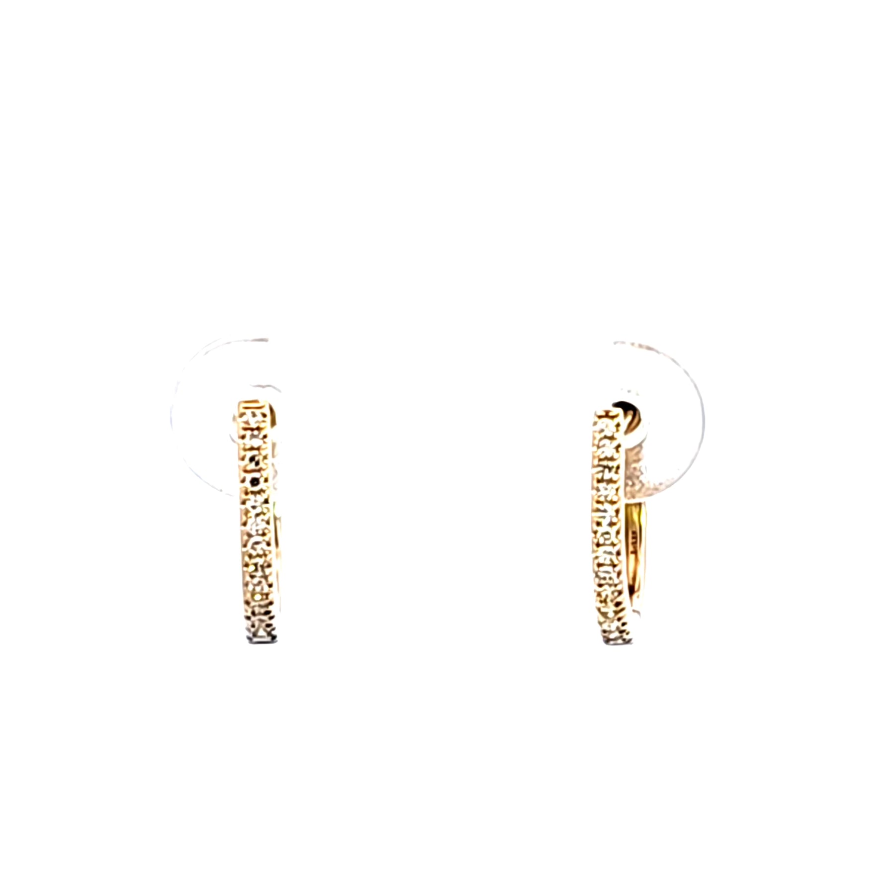 Elevate your everyday style with these exquisite 14K yellow gold hoop earrings. Each earring is meticulously crafted with brilliant-cut round diamonds, exuding a captivating sparkle and radiance. These earrings feature .07 carat total weight of diamonds. These earrings seamlessly blend classic design with modern sophistication, making them a versatile addition to any jewelry collection.