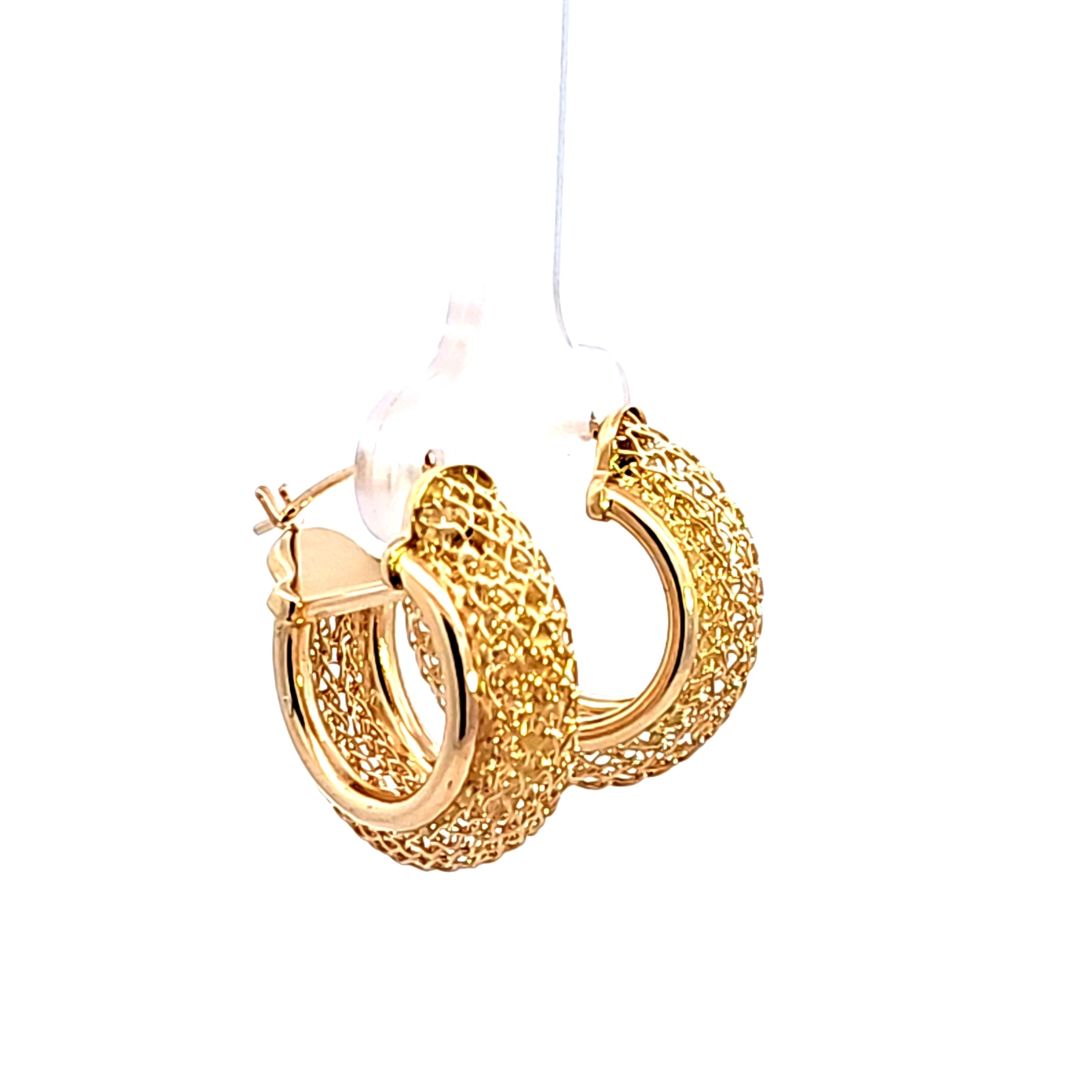 Elevate your style with these sophisticated 14K yellow gold hoop earrings. Their intricate design offers a modern twist on a classic silhouette, perfect for adding a touch of elegance to any ensemble. Crafted with precision, these earrings promise to be a versatile and timeless addition to your jewelry collection.