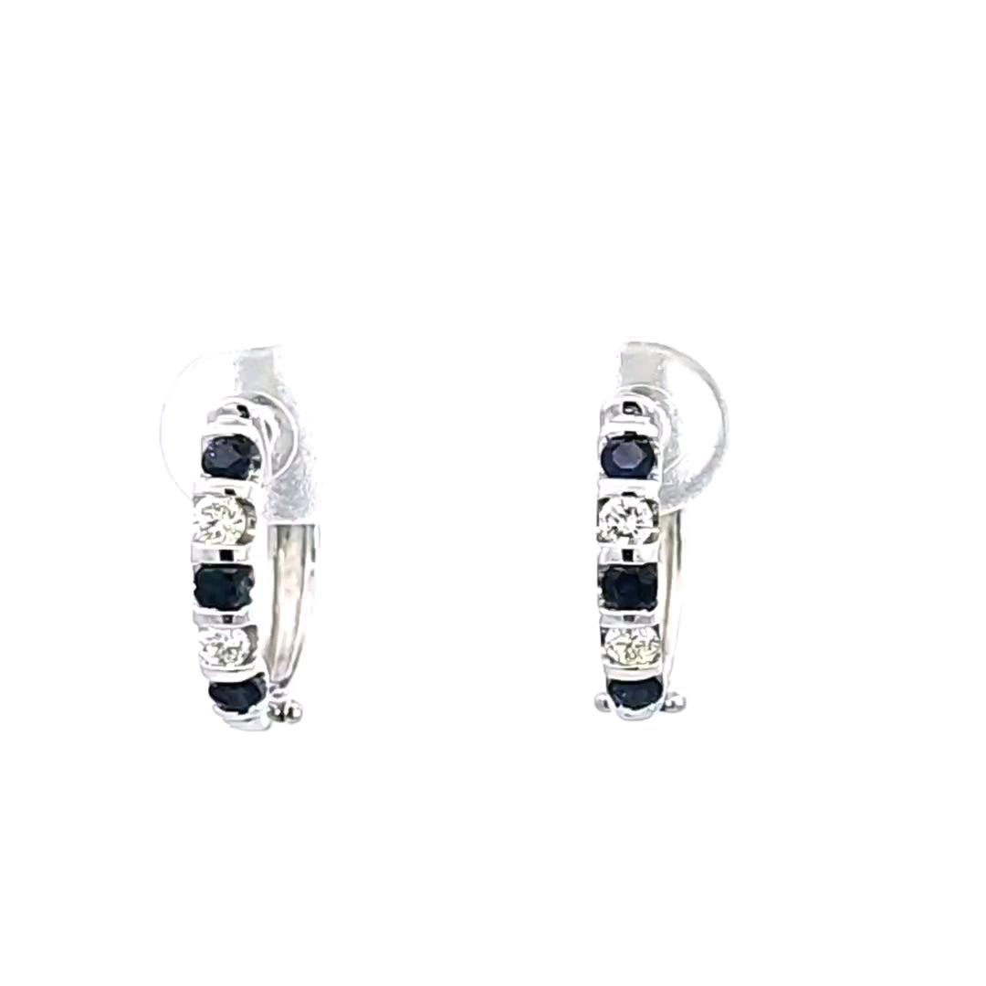Sterling Silver and Platinum Created Blue Sapphire and CZ Earrings