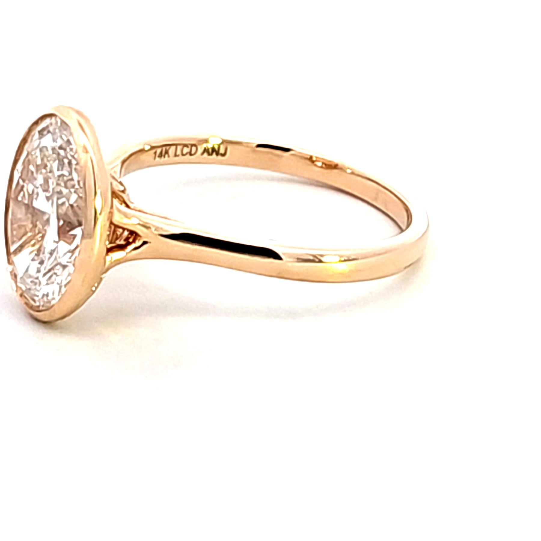 Yellow 14 Karat Bezel Lab Grown Diamond Engagement Ring With One = 3.01Ct Oval F VS1 Lab-Created Diamond