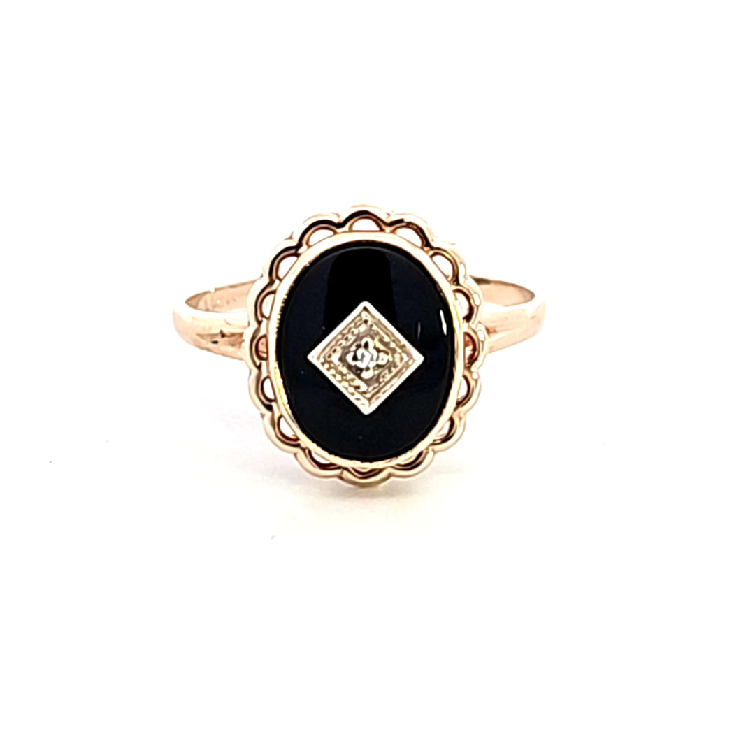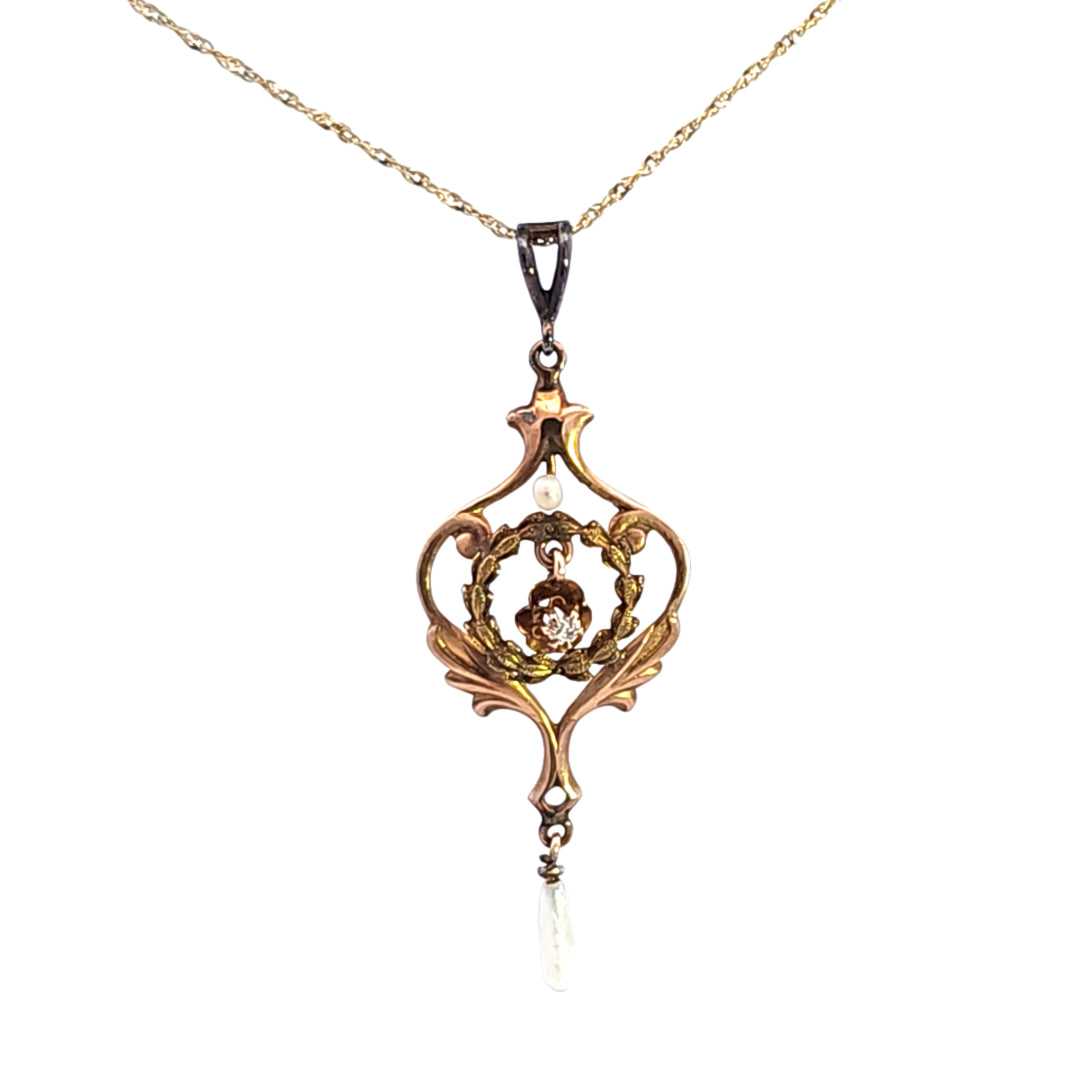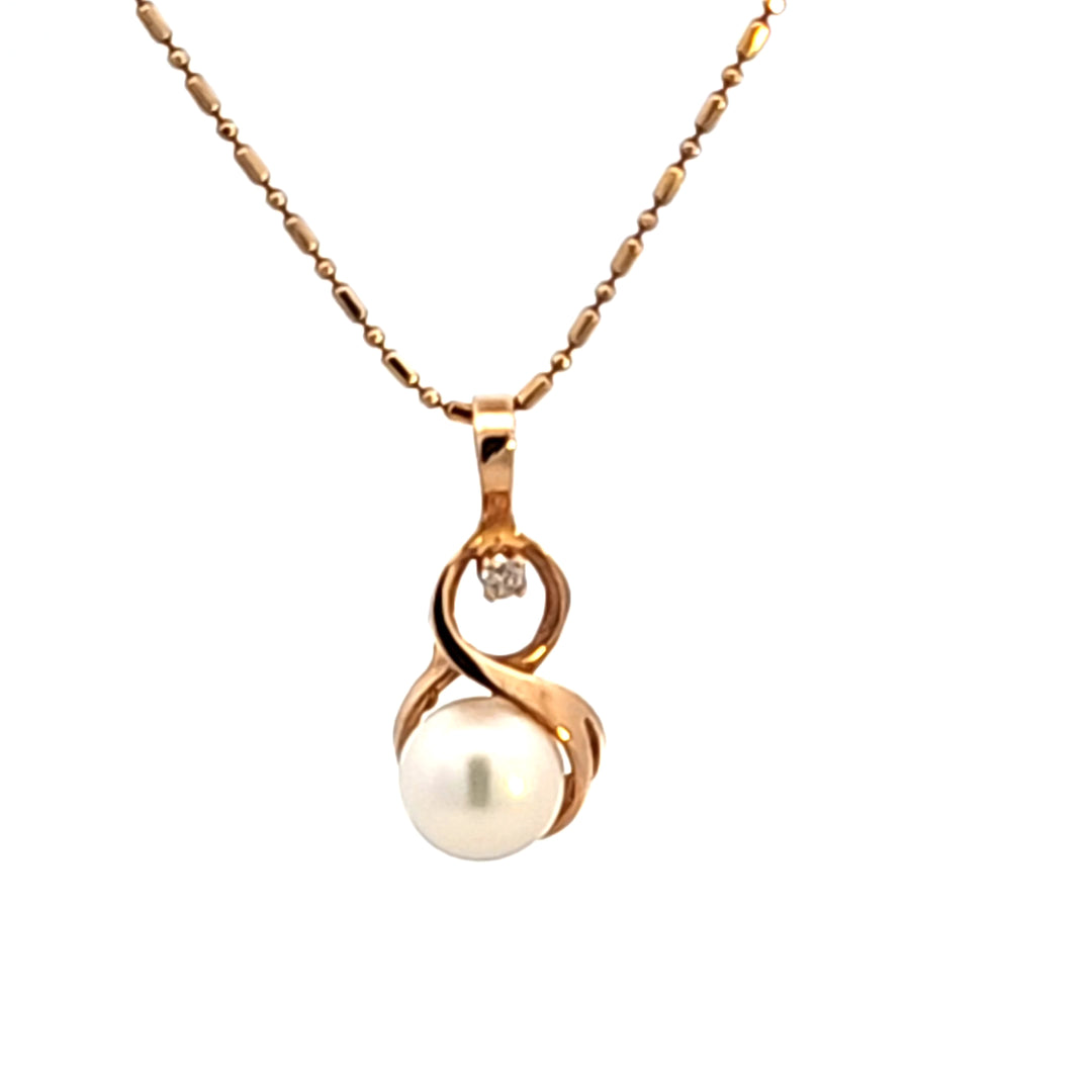 14KY Pearl and Diamond Estate Ring with Opal Inlays