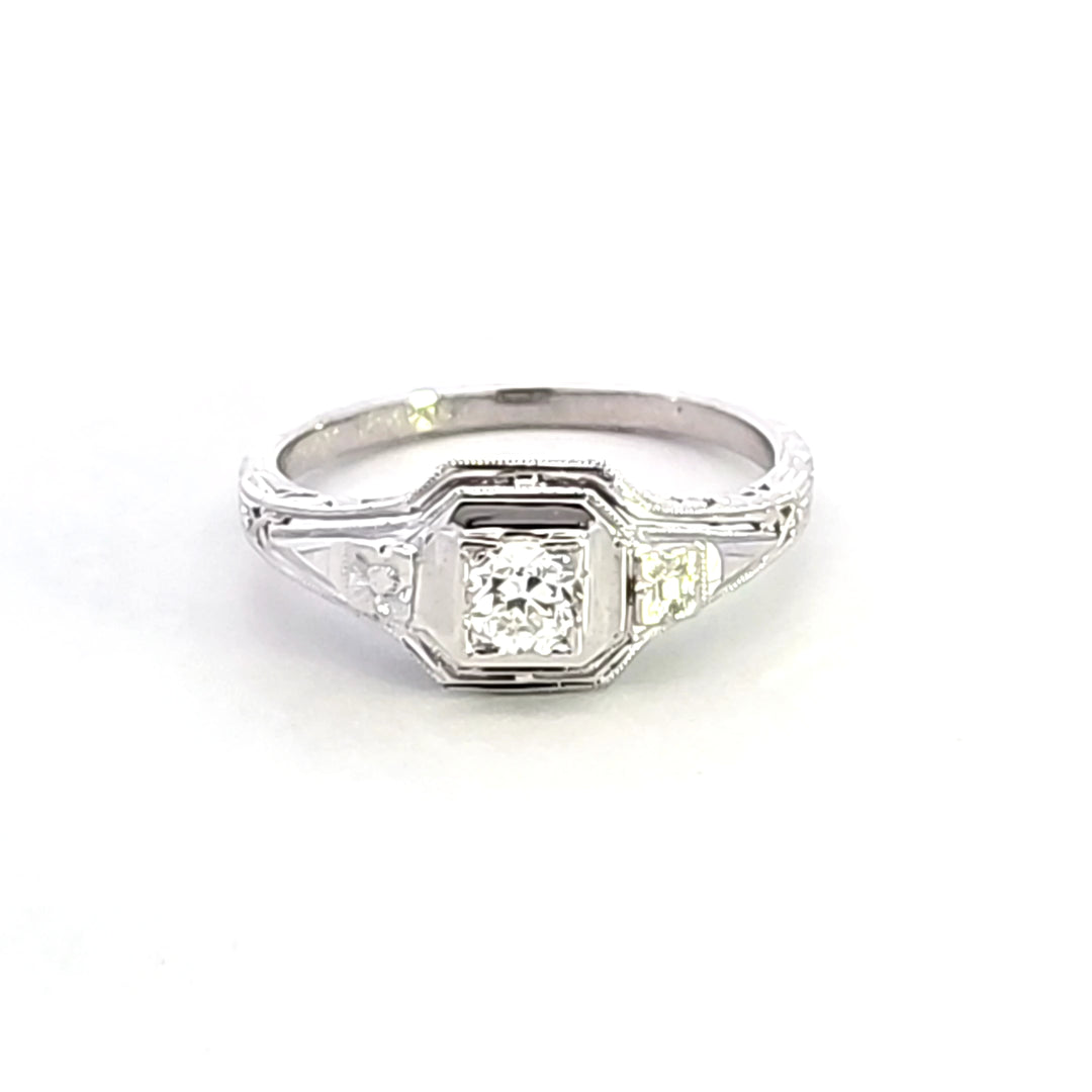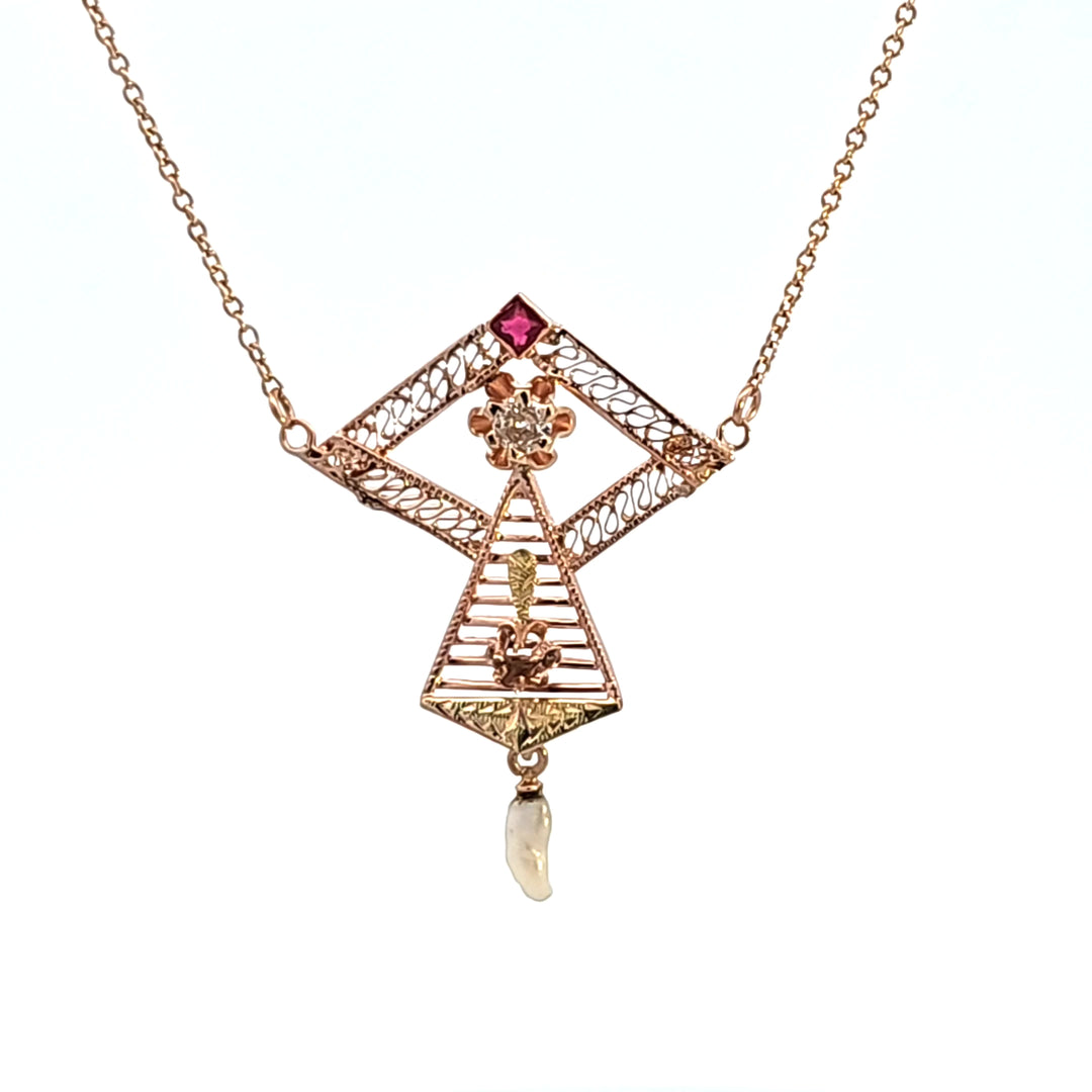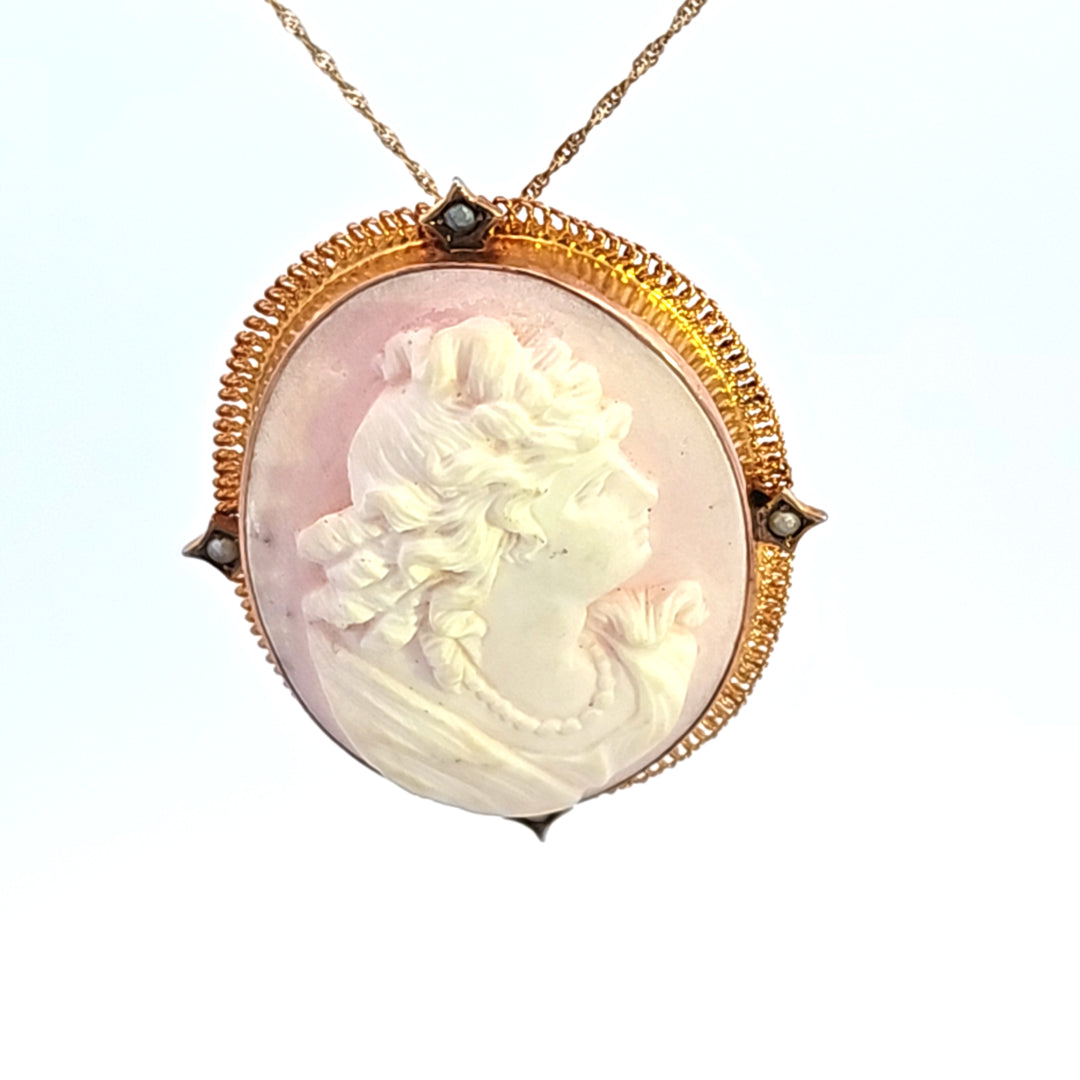 14KY Pearl and Diamond Estate Ring with Opal Inlays