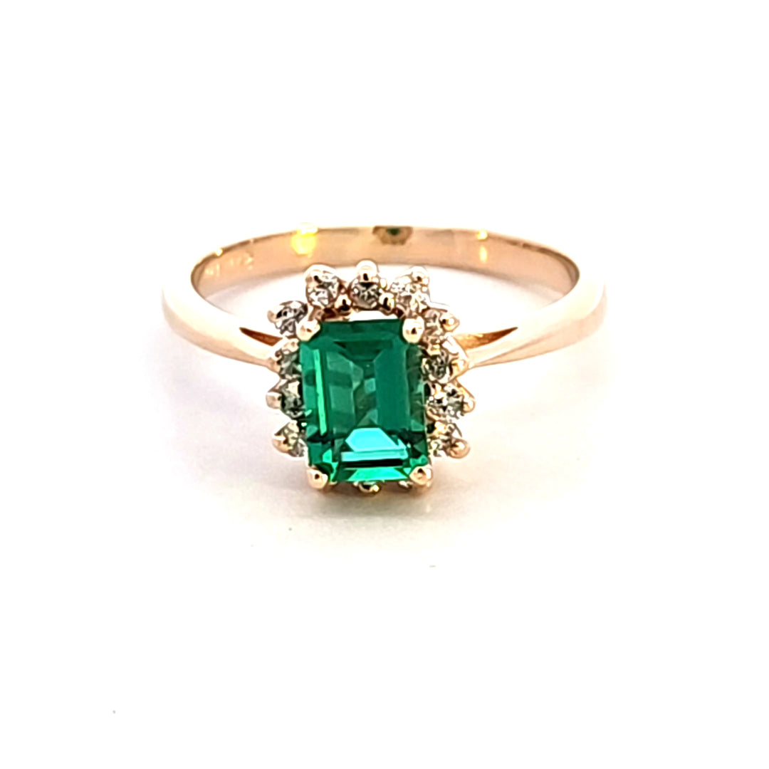 14KY Synthetic Emerald and Diamond Estate Ring