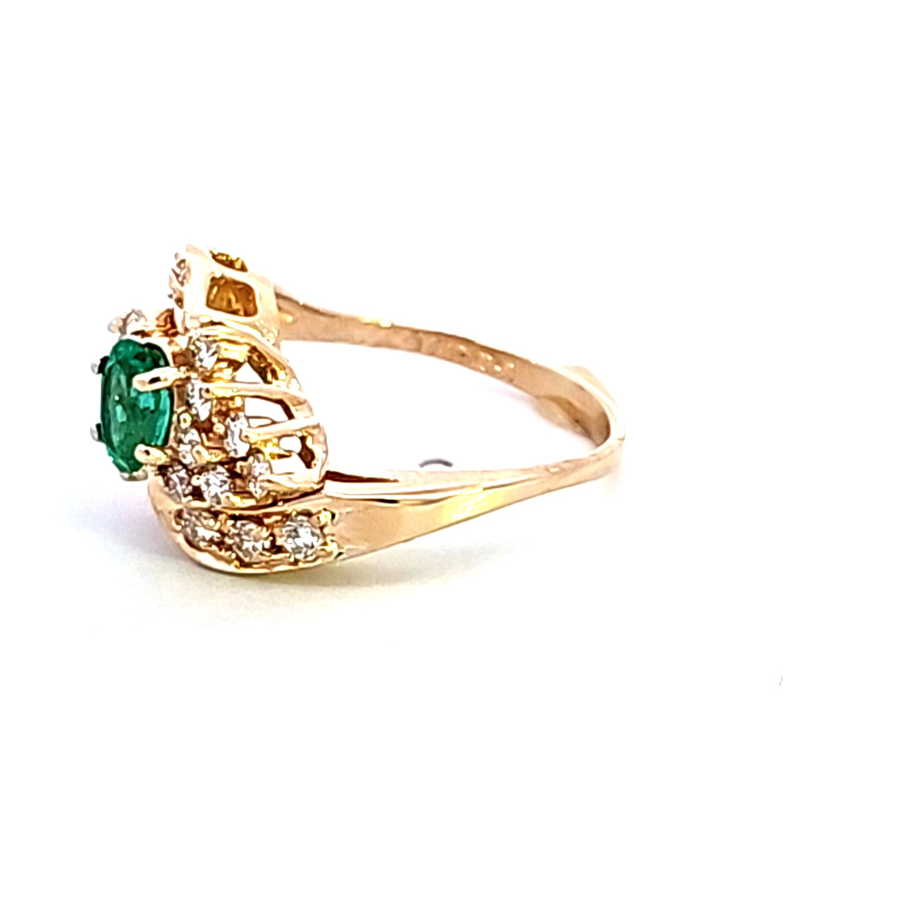 Elevate your style with this exquisite Estate Collection ring crafted in radiant 14K yellow gold. It features a captivating .40 carat emerald with a lush green hue, embraced by a dazzling array of .60 carat total weight of accent diamonds. This ring epitomizes elegance and sophistication, a true testament to fine jewelry craftsmanship.