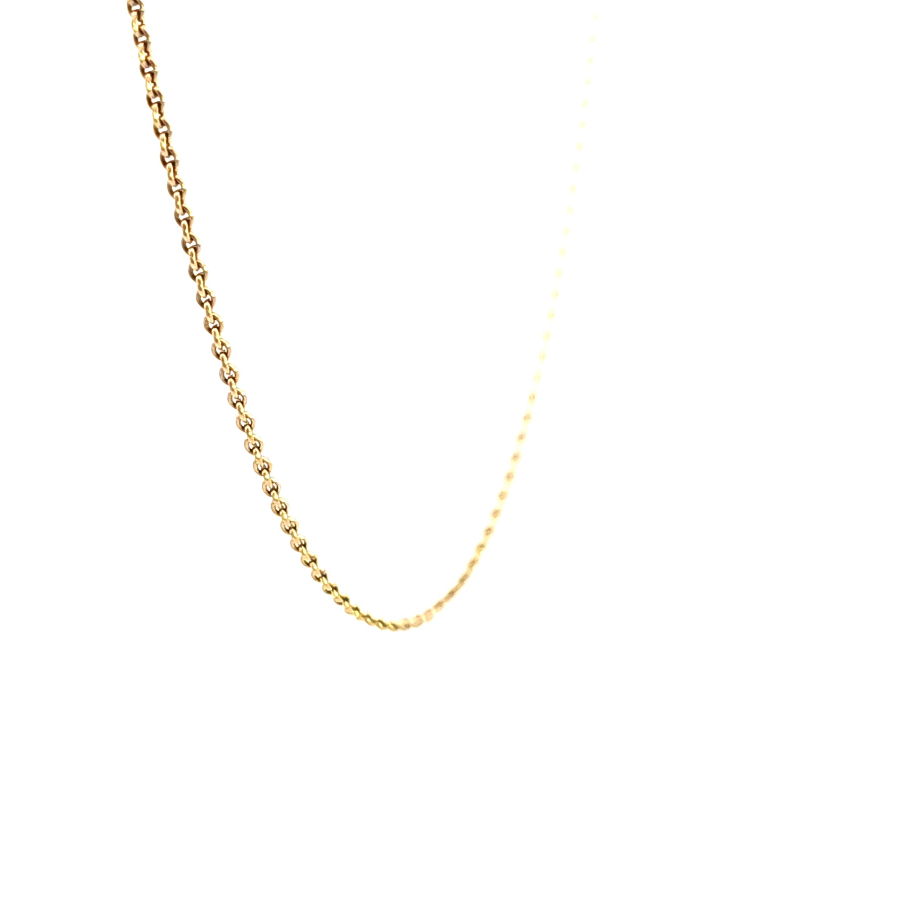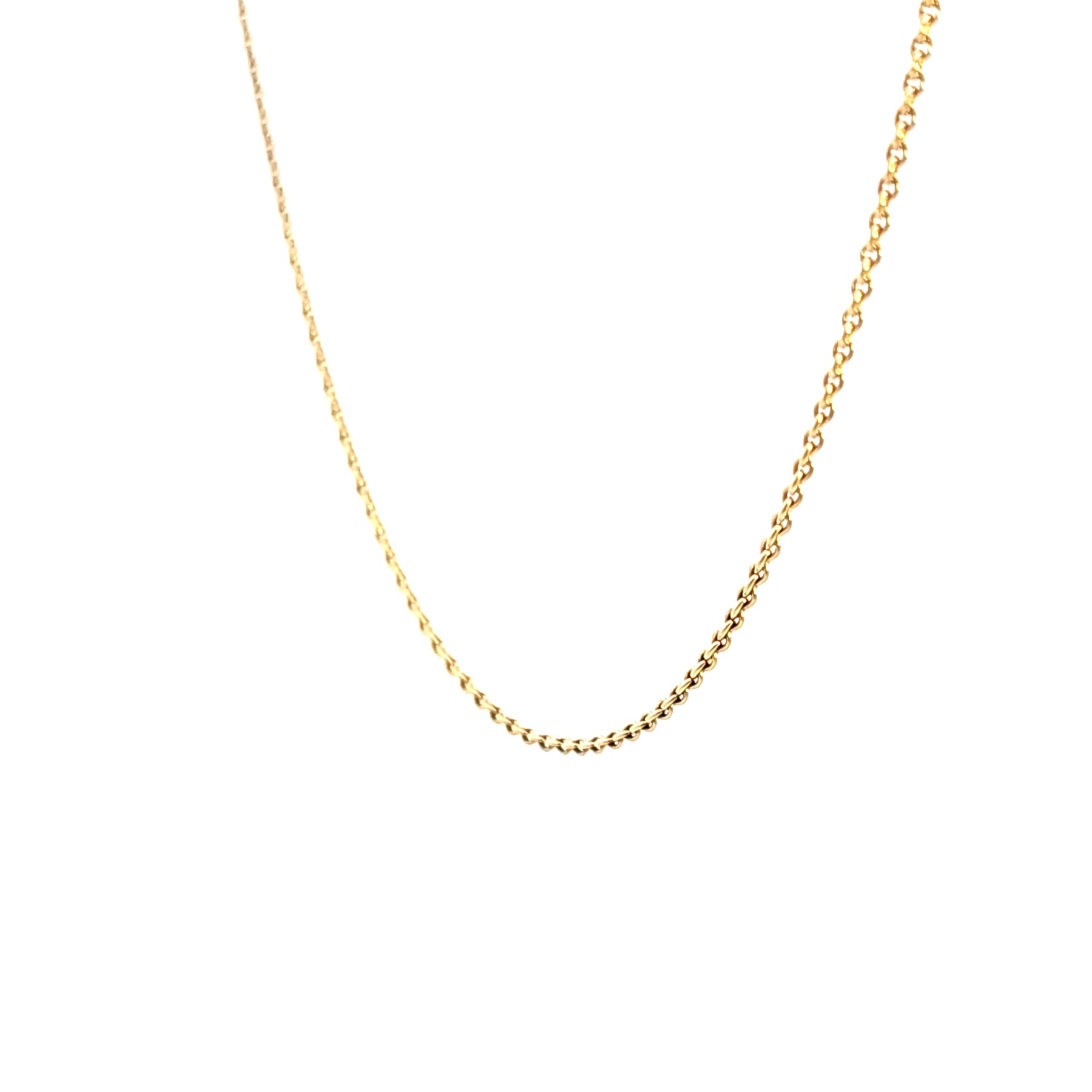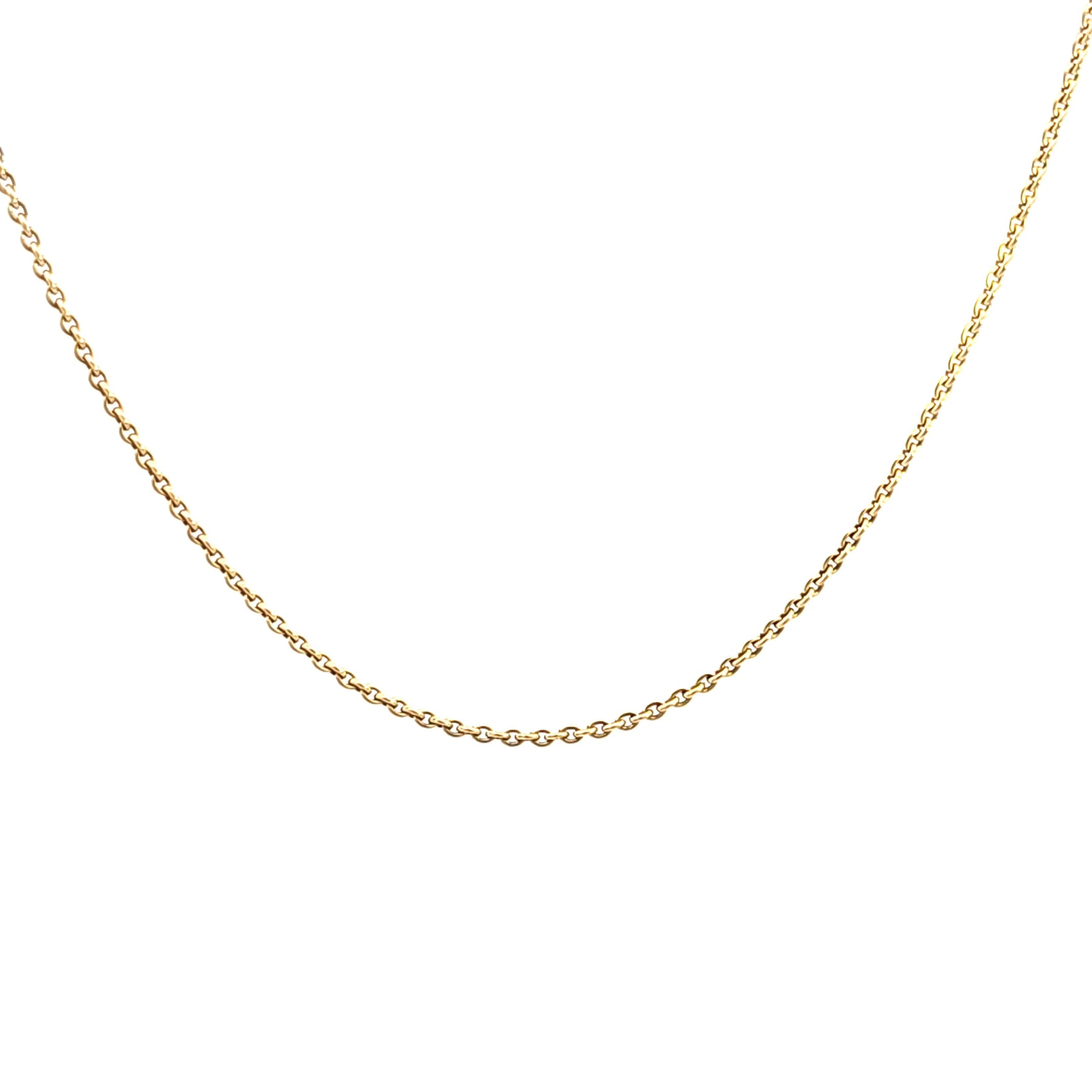 Elevate your style with this exquisite 18K yellow gold chain necklace. Crafted from precious gold, this delicate cable link chain offers a subtle touch of luxury. Its timeless design ensures it will remain a treasured piece in your jewelry collection for years to come. Perfect for showcasing a pendant or worn alone for a minimalist statement.