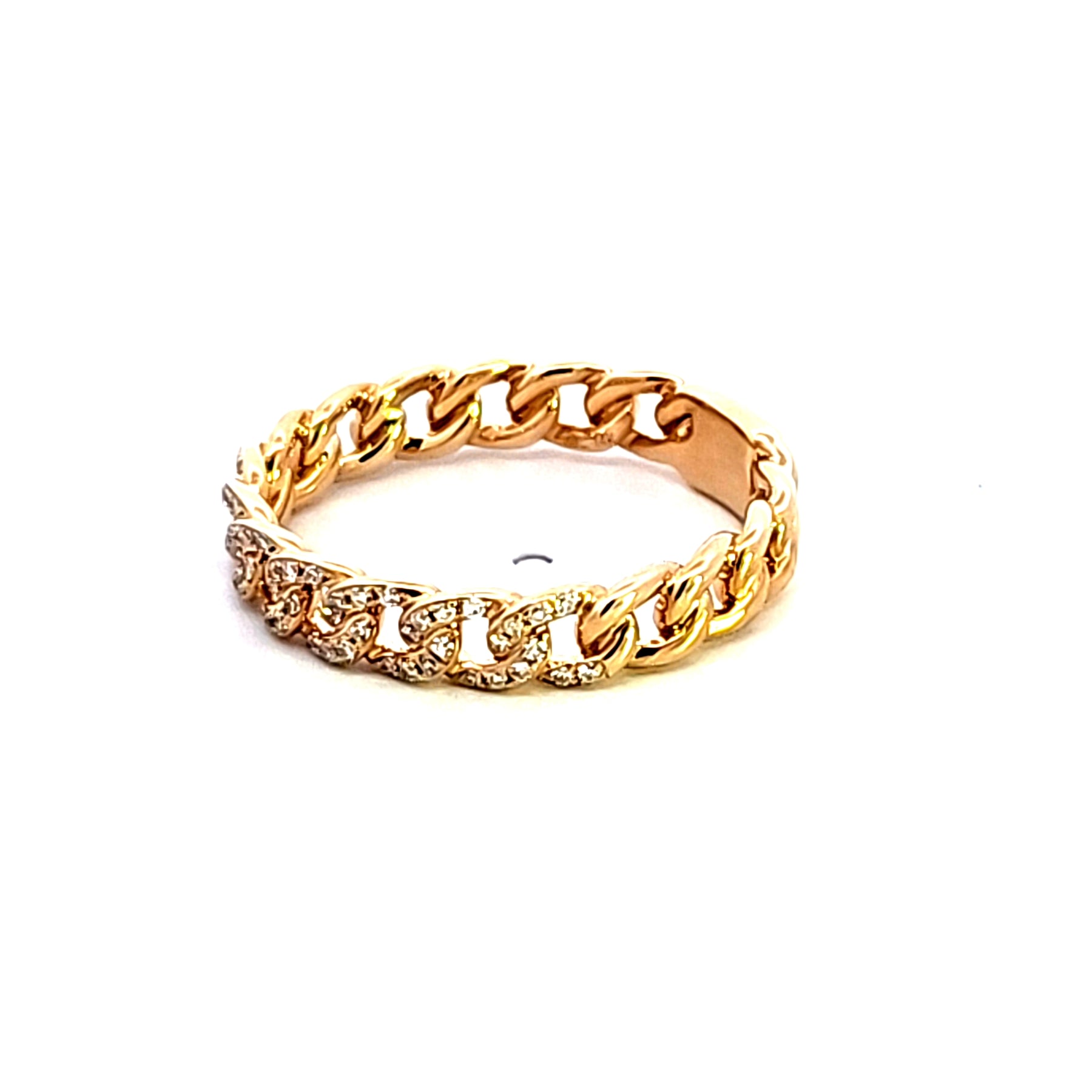 Elevate your style with this exquisite link band ring crafted from luxurious 14K yellow gold. Its unique chain design is accentuated with .16 carat total weight of round cut diamonds, offering exceptional sparkle and a touch of elegance. This sophisticated piece seamlessly combines modern design with timeless beauty.