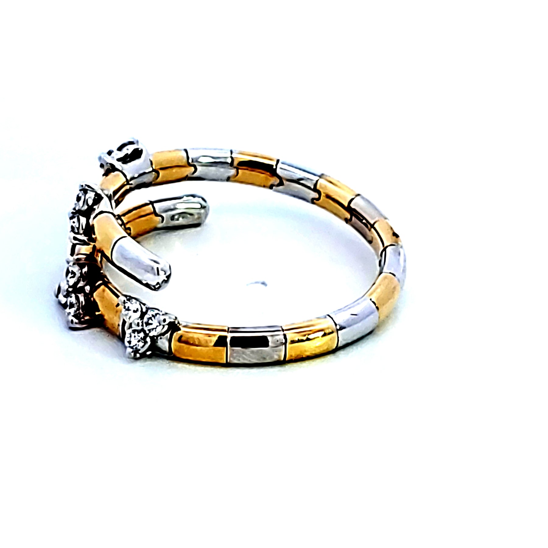 Behold the epitome of elegance and refinement encapsulated in this mesmerizing fashion ring. This exquisite coil fashion ring with diamonds will render you breathless. Made of 14K yellow and white gold, this is a unique piece of jewelry.