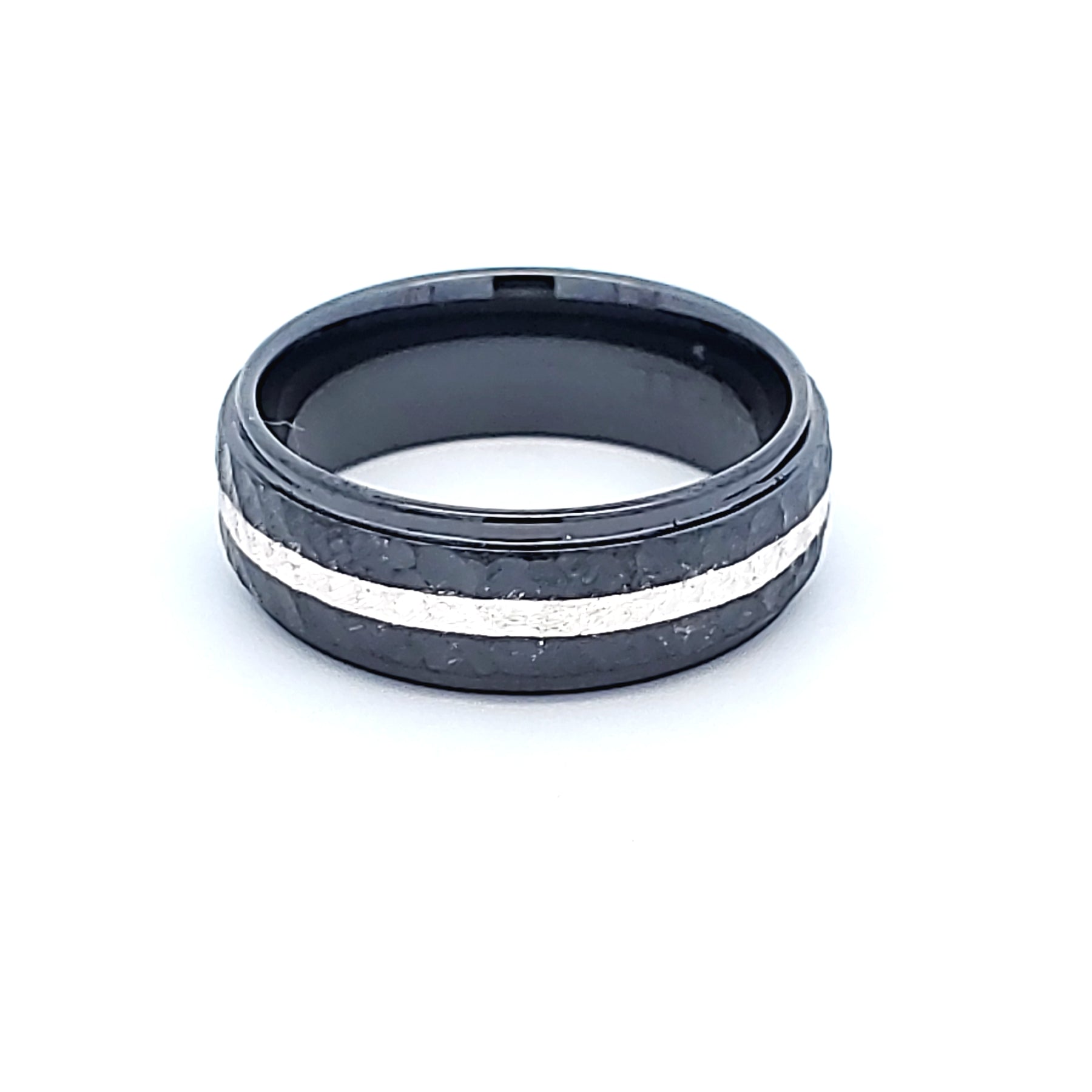 This is a stylish and modern band made of 8mm Black Ceramic with a 2mm Moon stripe.