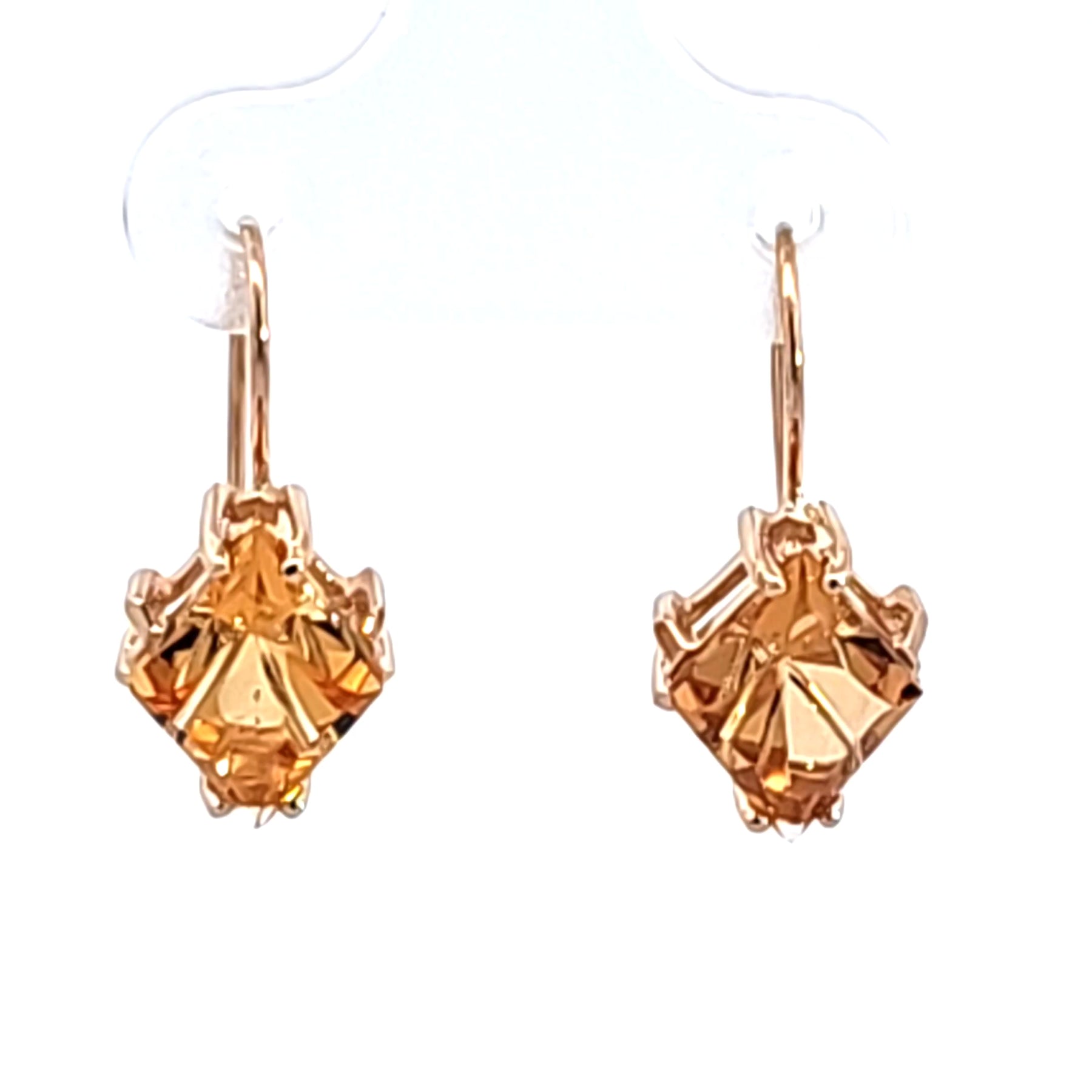 Elevate your ensemble with these radiant 14K yellow gold drop earrings, each showcasing a captivating 12 by 8 mm kite shaped citrine. The mixed cutting style accentuates the gem's natural warmth, creating a sophisticated and eye-catching accessory.