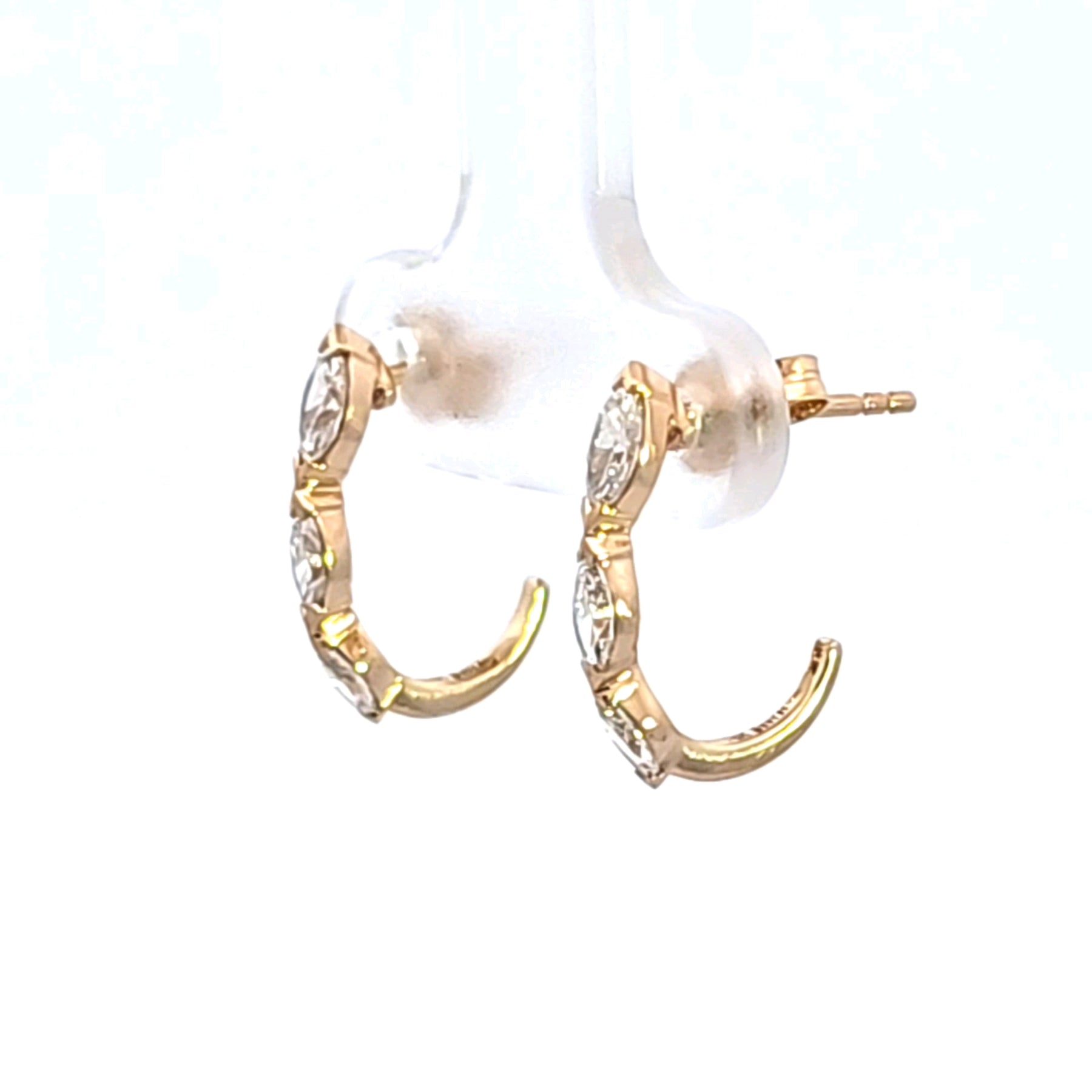 These stunning 14K yellow gold diamond earrings are the perfect accessory for any occasion. Crafted with precision, they feature a delicate design that elegantly frames the face, adding a touch of sophistication to your look. Whether you're dressing up for a special event or adding flair to your everyday outfit, these earrings will surely turn heads. The earrings feature marquise shaped diamonds, with a total weight of .66 carat for the pair.