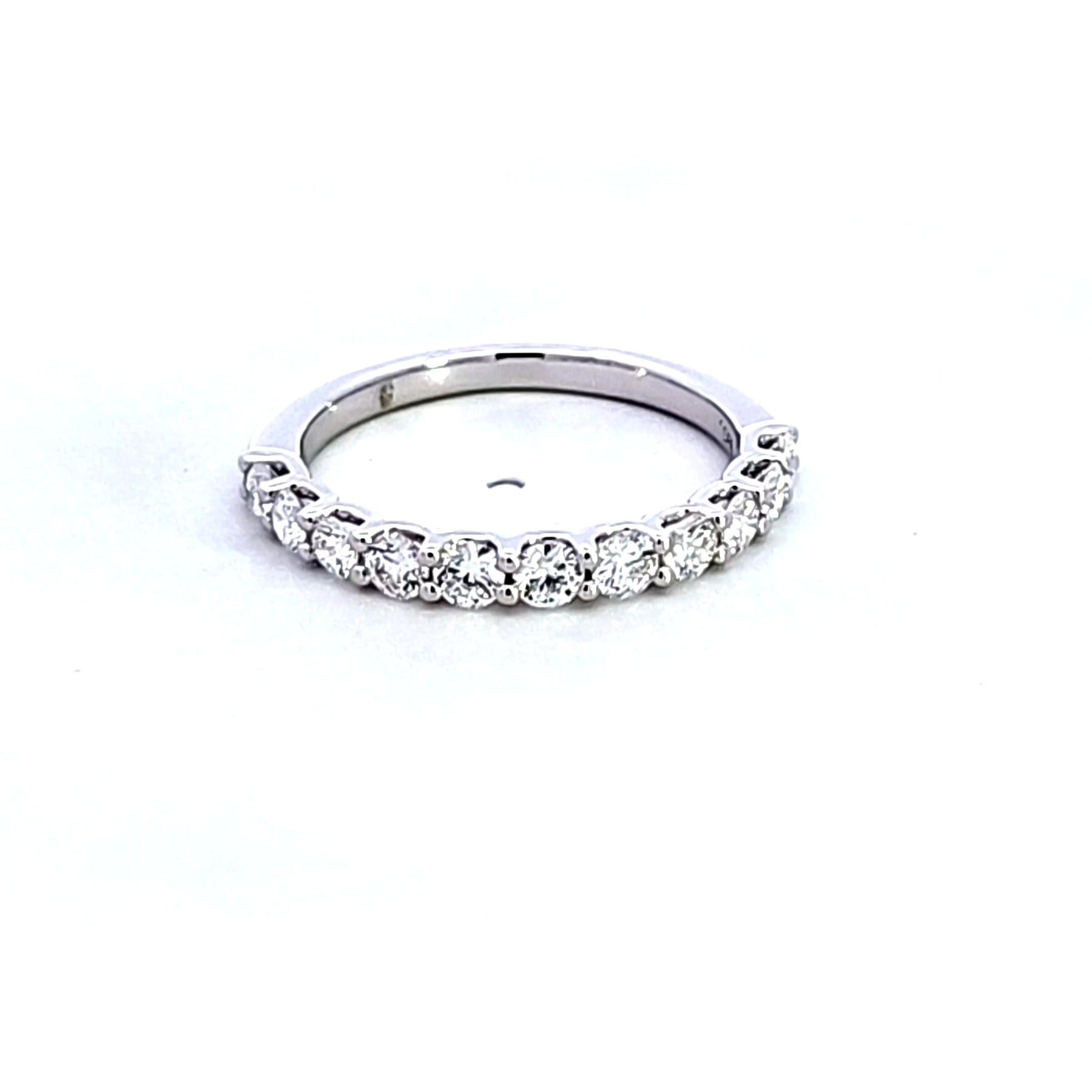 Dazzle with this exquisite 14K white gold wedding band. Its delicate design showcases a row of .75 carat total weight of brilliant round cut diamonds, symbolizing everlasting love and commitment. A timeless piece that adds a touch of refined elegance to any ensemble, perfect for commemorating life's special moments.