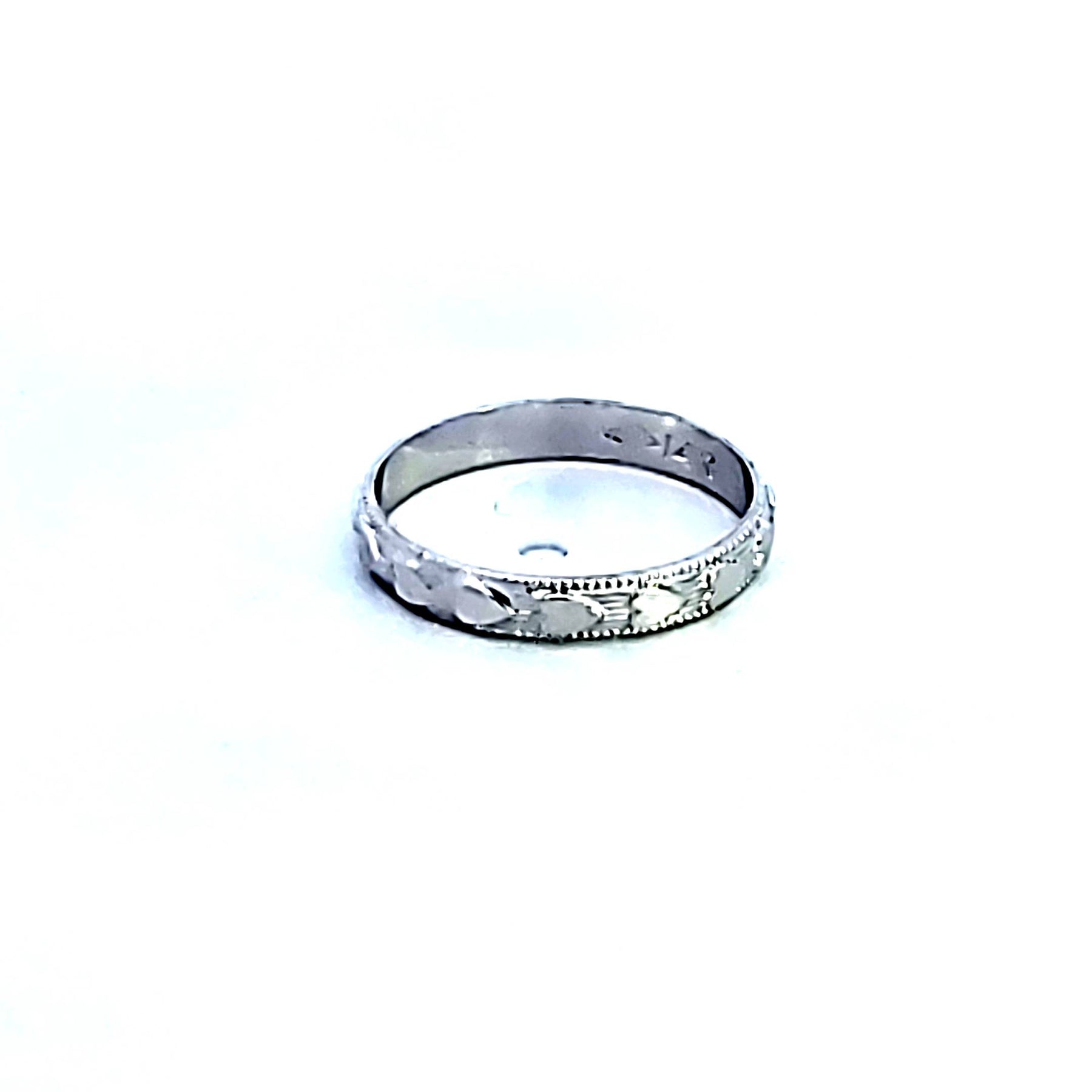 White 14 Karat Engraved Baby Ring With Raised Hearts