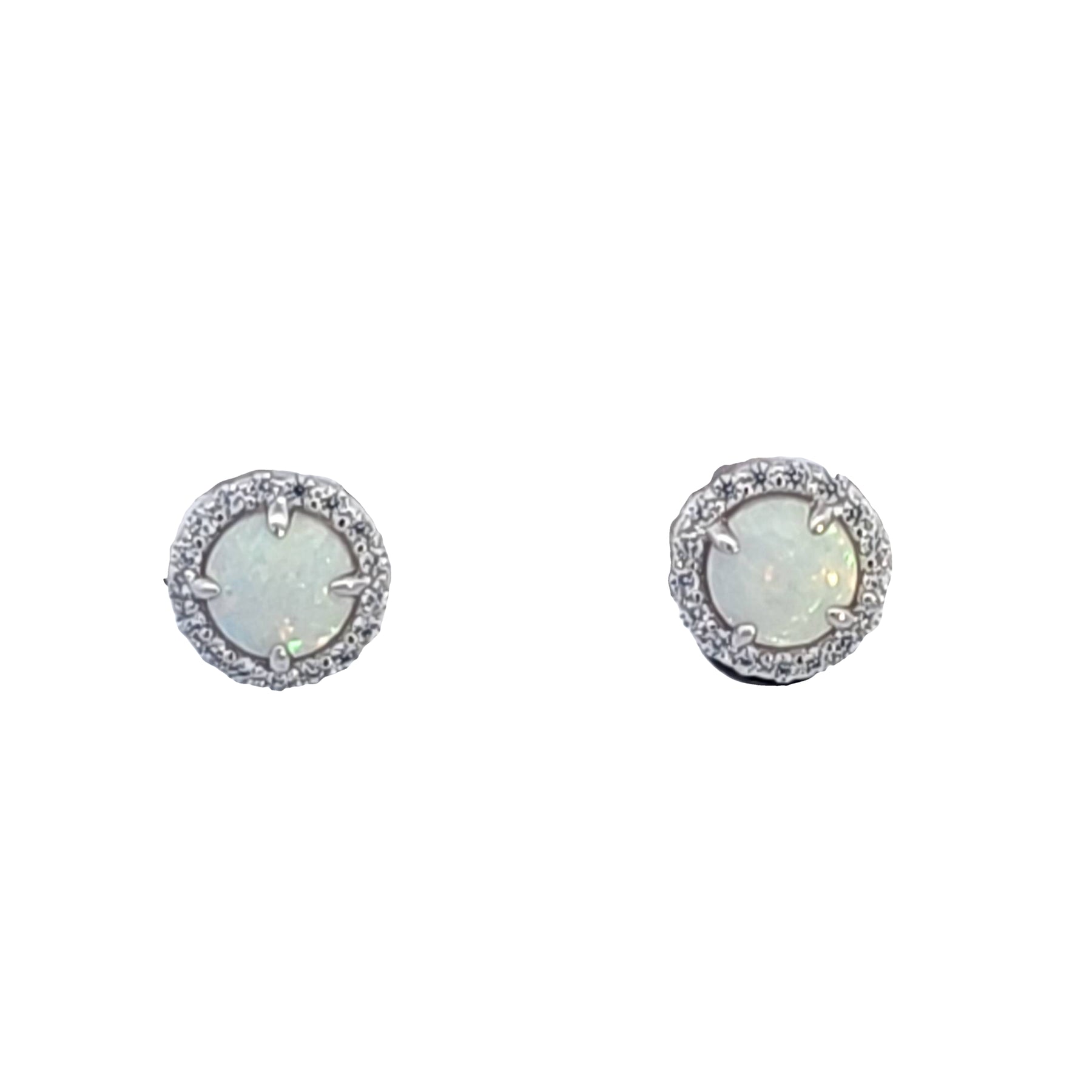 Indulge in the splendor of these captivating Opal and CZ Halo Stud Earrings, a timeless addition to any jewelry collection.