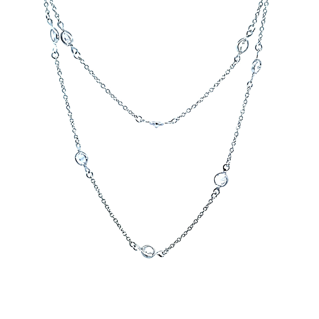Sterling Silver and Platinum CZ Bezel Station Necklace