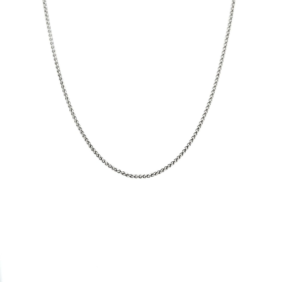 White 14 Karat Round Wheat Chain Length 18