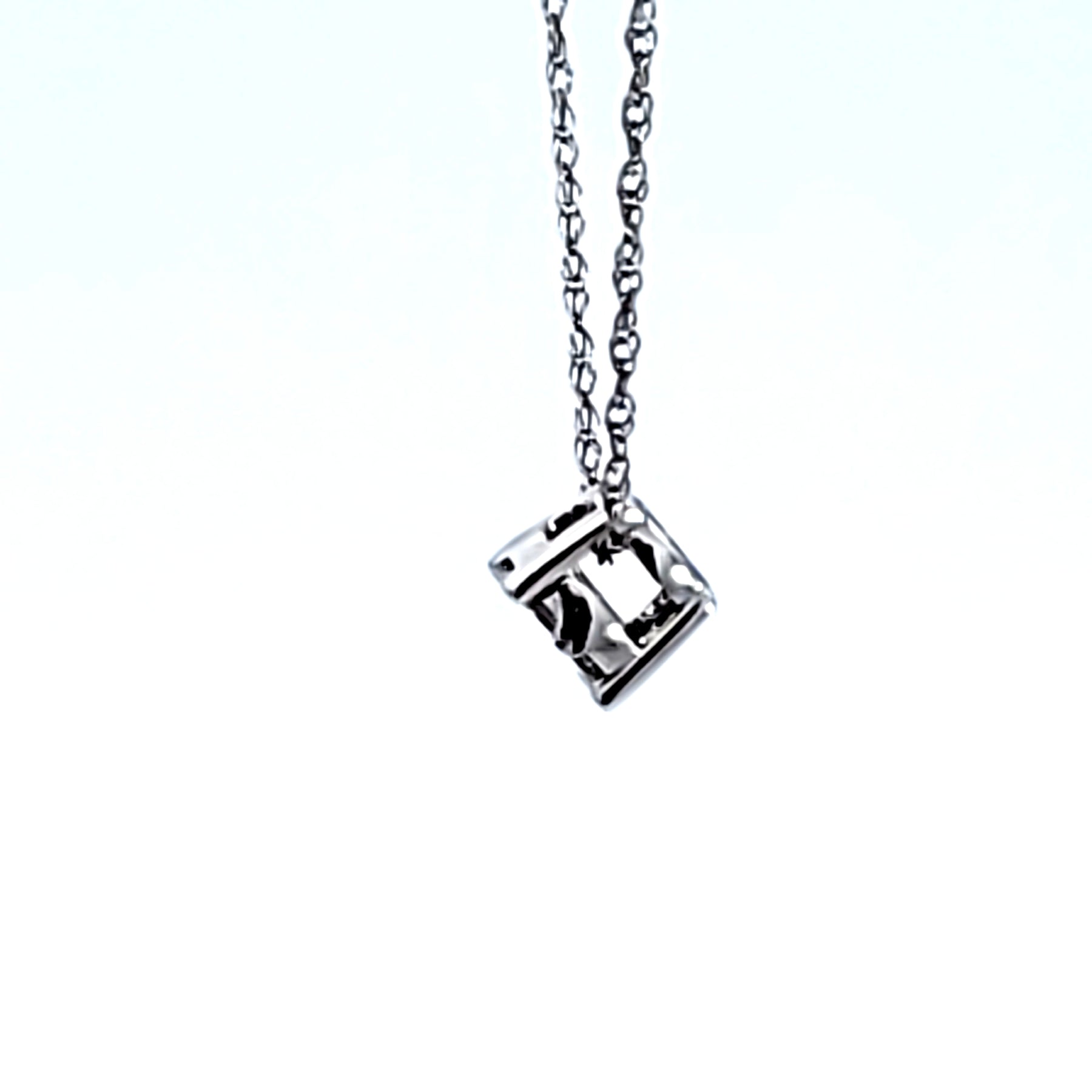 This 14K white gold "Lovebright" diamond pendant features a total of nine full-cut diamonds set in a circular cluster, with a total weight of .12 carat. The pendant hangs from an 18 inch box chain. This pendant is the perfect gift for a loved one, and the message it conveys will always be remembered.