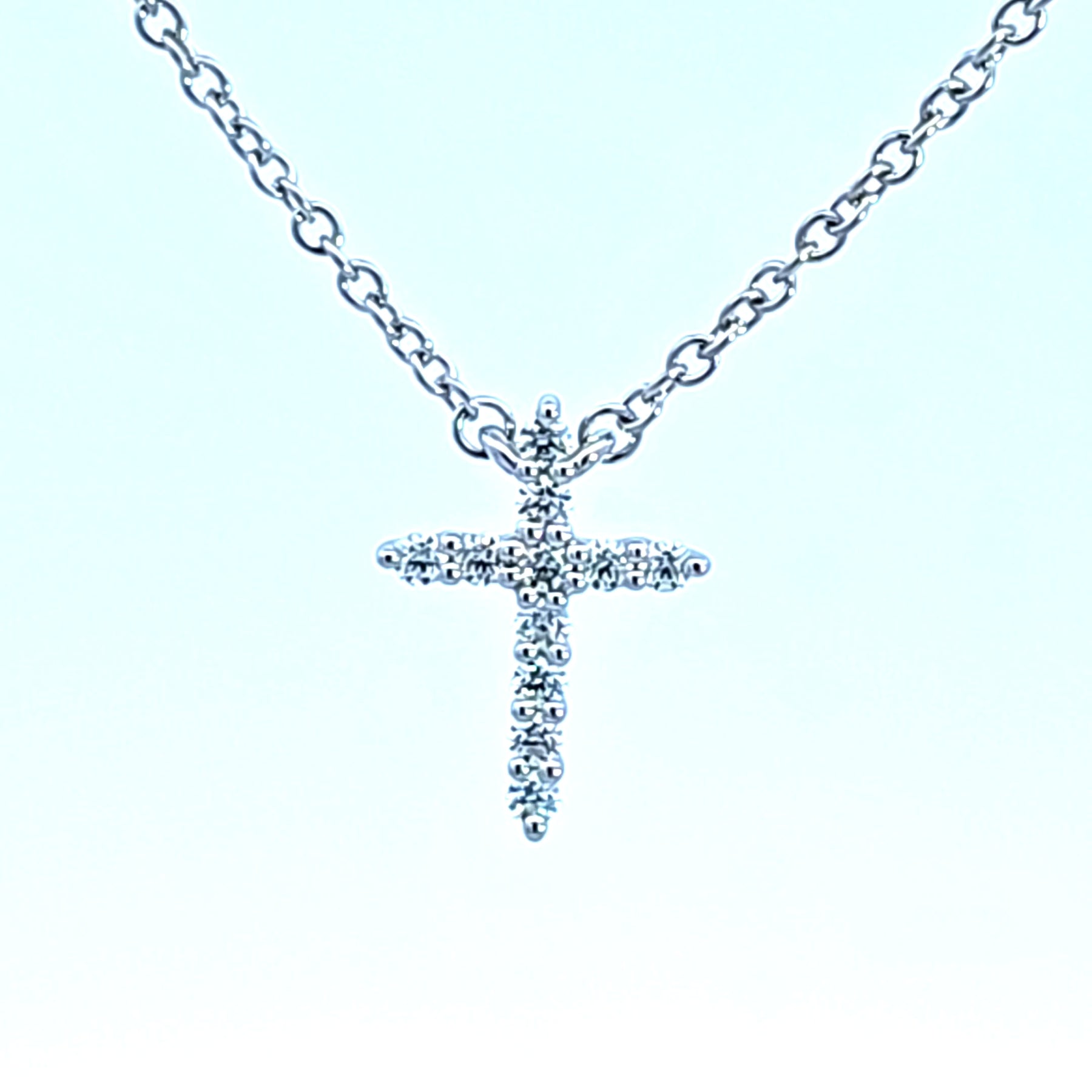 White 18 Karat "Signature Cross" Necklace Length 18 (Adjustable) With 11=0.11Tw Hearts On Fire G/H VS2-SI1 Diamonds