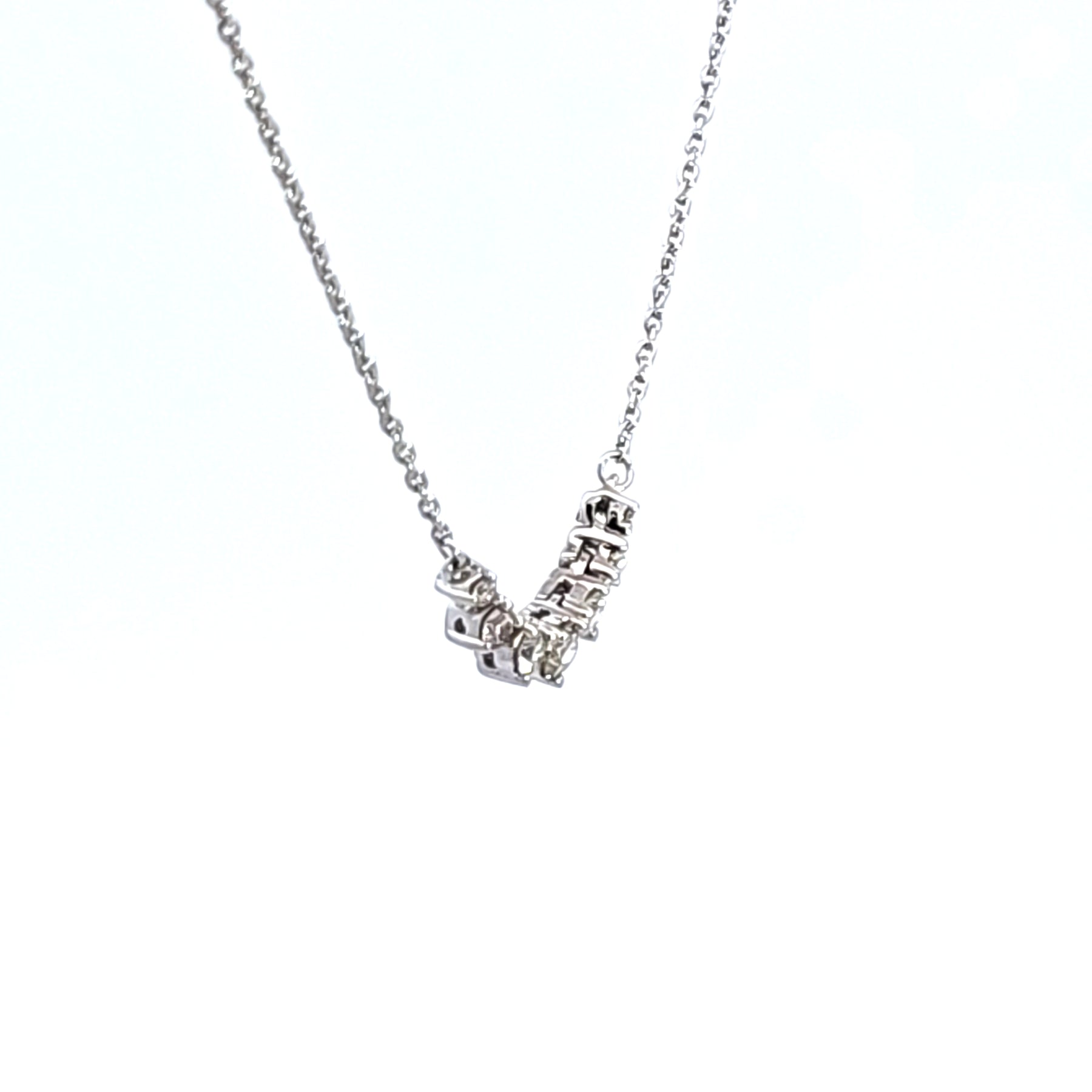 Elevate your style with this exquisite white gold diamond necklace. Delicately crafted in 14K white gold, this necklace features a series of .25 carat total weight of brilliant round cut diamonds set in a graceful, curved smile design. Its symmetrical arrangement and transparent stones add a touch of understated elegance to any ensemble.