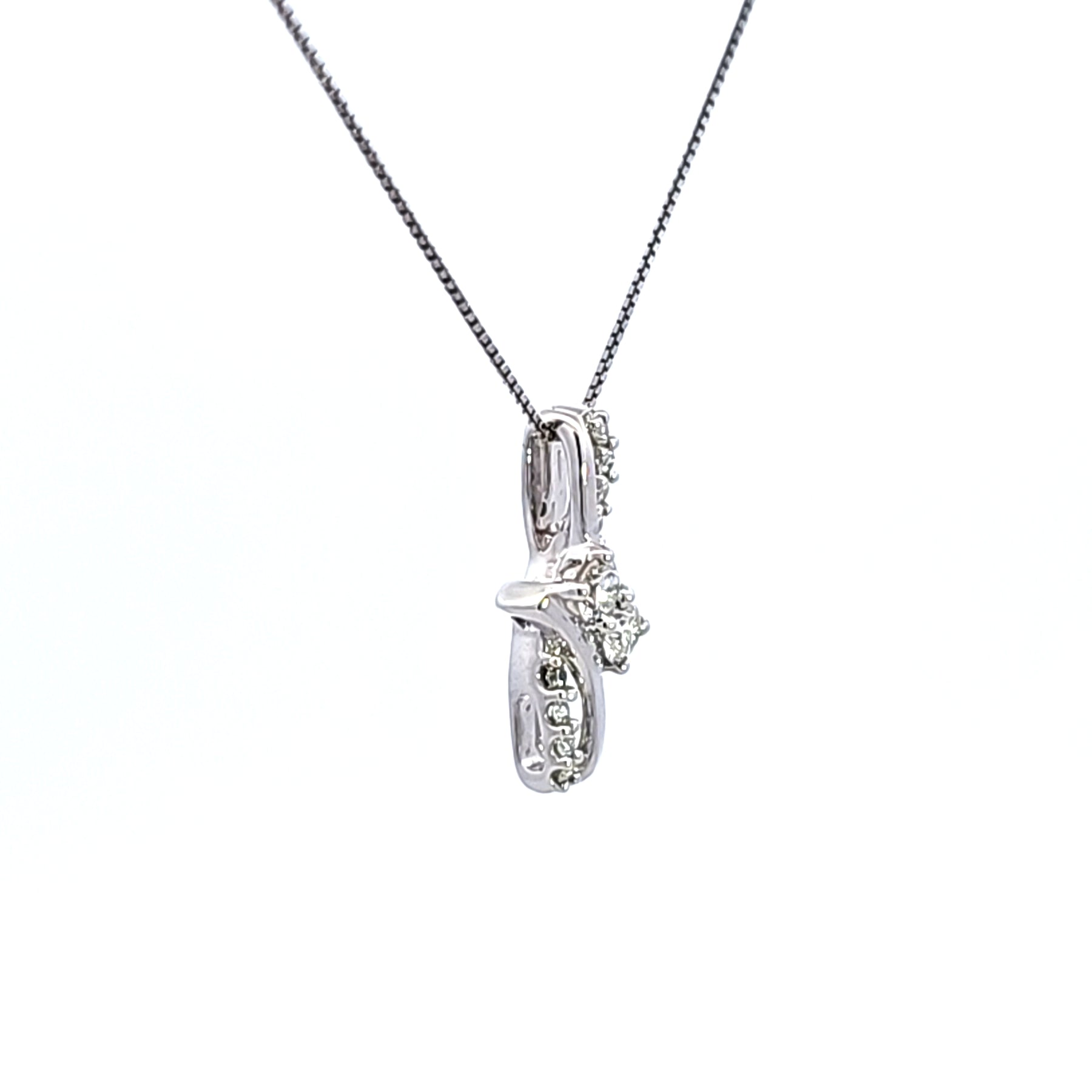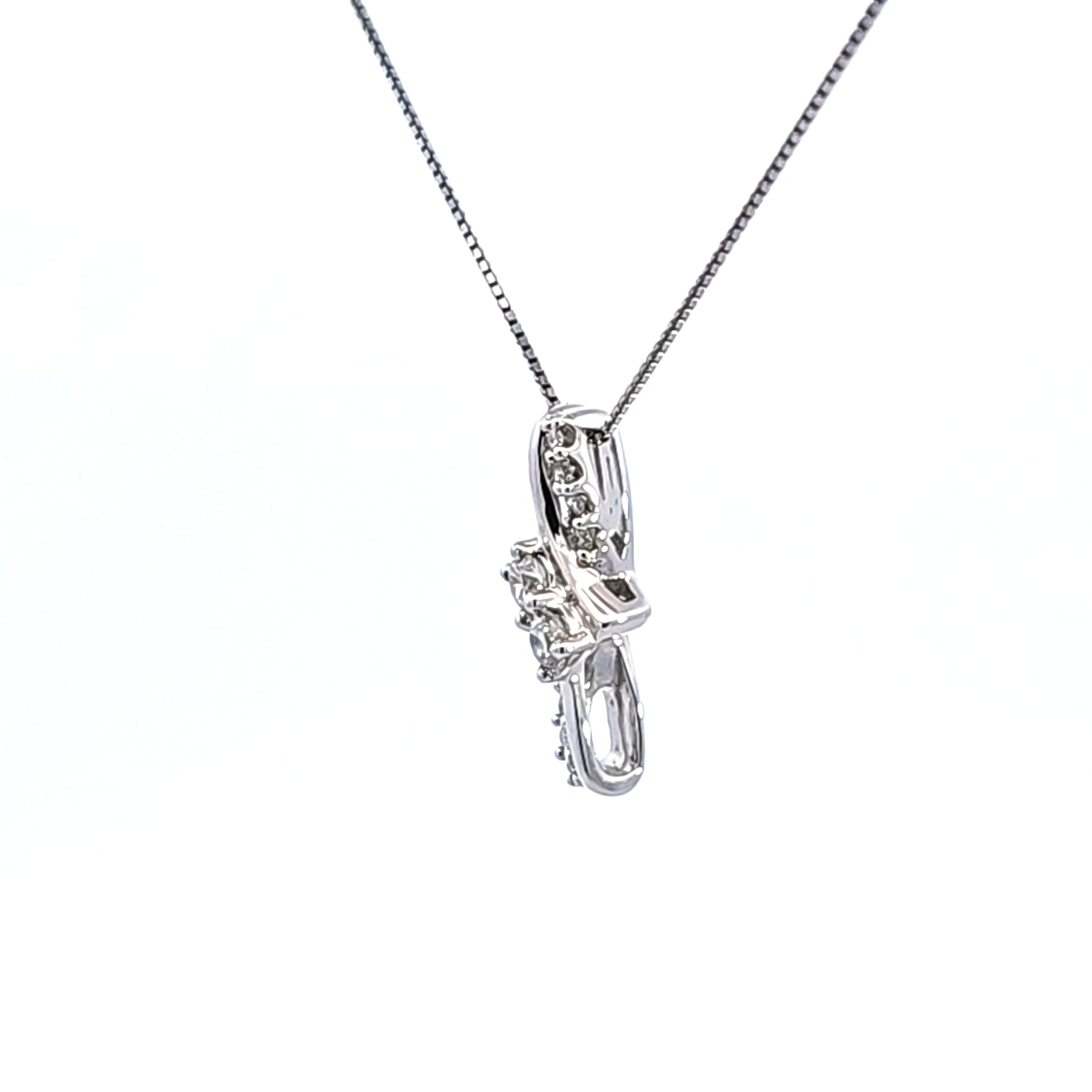 Elevate your elegance with this exquisite diamond pendant necklace. Crafted in lustrous 14K white gold, this piece features a dazzling array of round cut diamonds, each meticulously set to maximize brilliance, suspended from an 18 inch box chain. The suspended vertically orientation ensures graceful movement, making it a timeless addition to any jewelry collection.