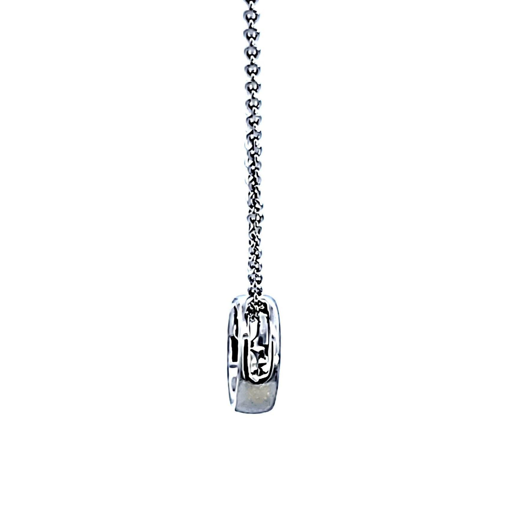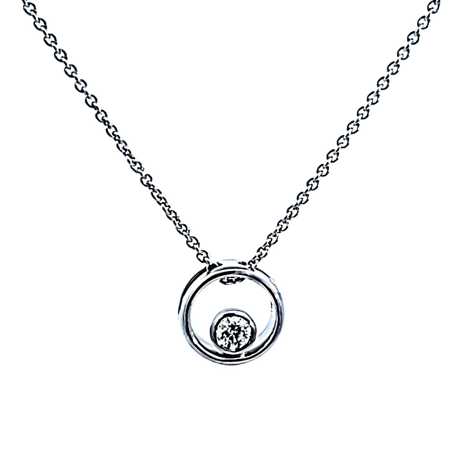 Introducing our elegant .05 carat Sterling Silver Amor Diamond Pendant, a stunning piece. This exquisite necklace features a delicate silver chain that beautifully complements the centerpiece: an intricately detailed Amor Diamond pendant.
