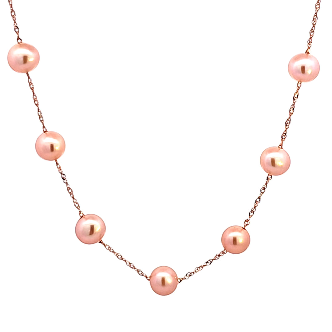 14KR Pink Freshwater Potato Pearls 18" Tin Cup Necklace