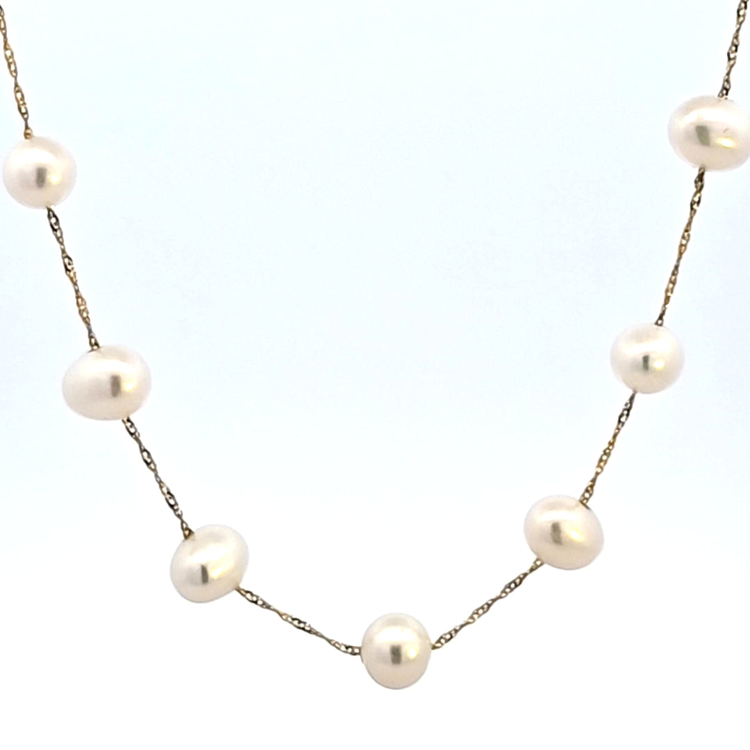 14KY White Freshwater Potato Pearls 18" Tin Cup Necklace