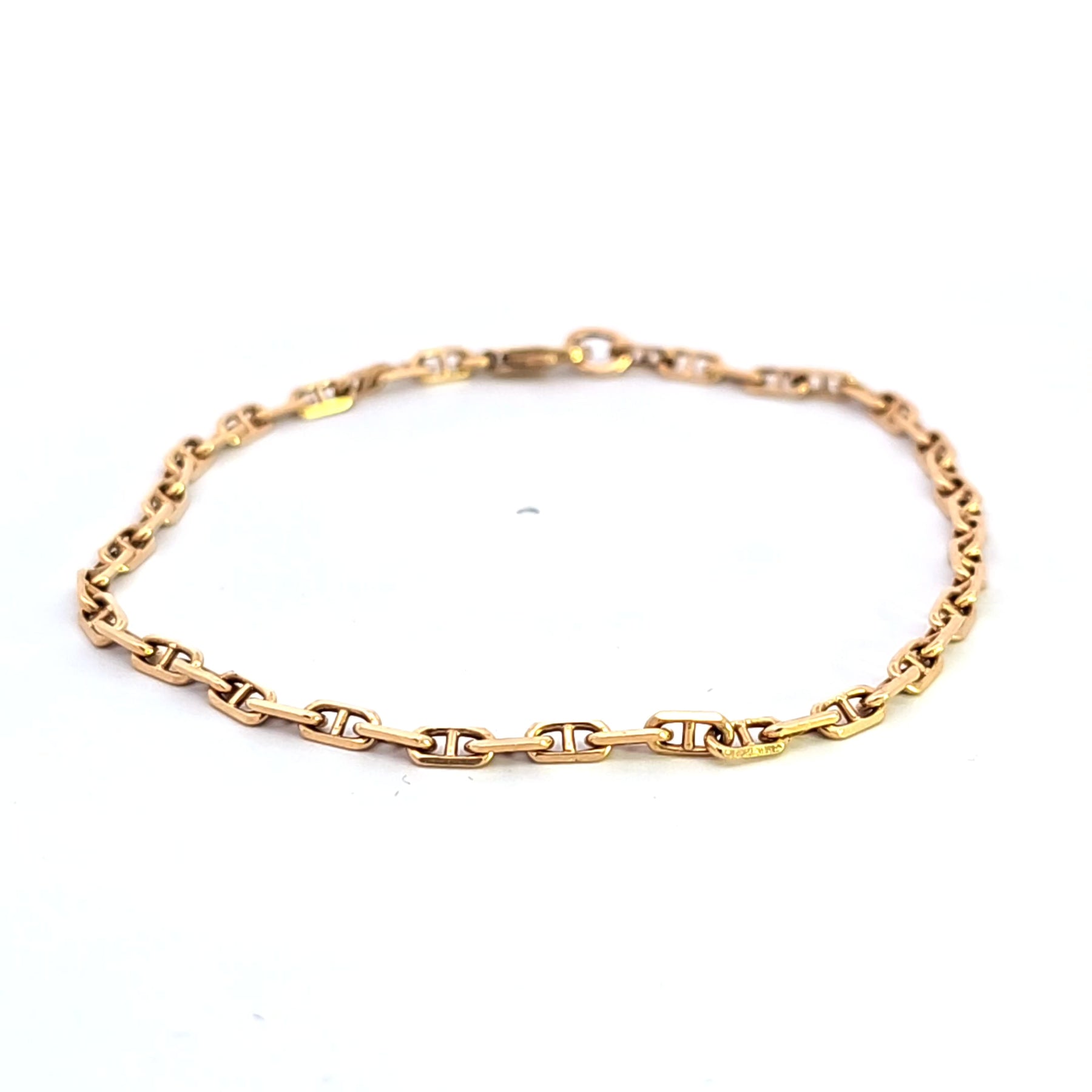 This stunning 14K yellow gold chain bracelet embodies understated elegance. Crafted from lustrous gold, the finely anchor link chain creates a delicate and flexible design. Perfect for adding a subtle touch of sophistication to any ensemble, this bracelet exudes timeless charm and refinement, ideal for everyday wear or special occasions.